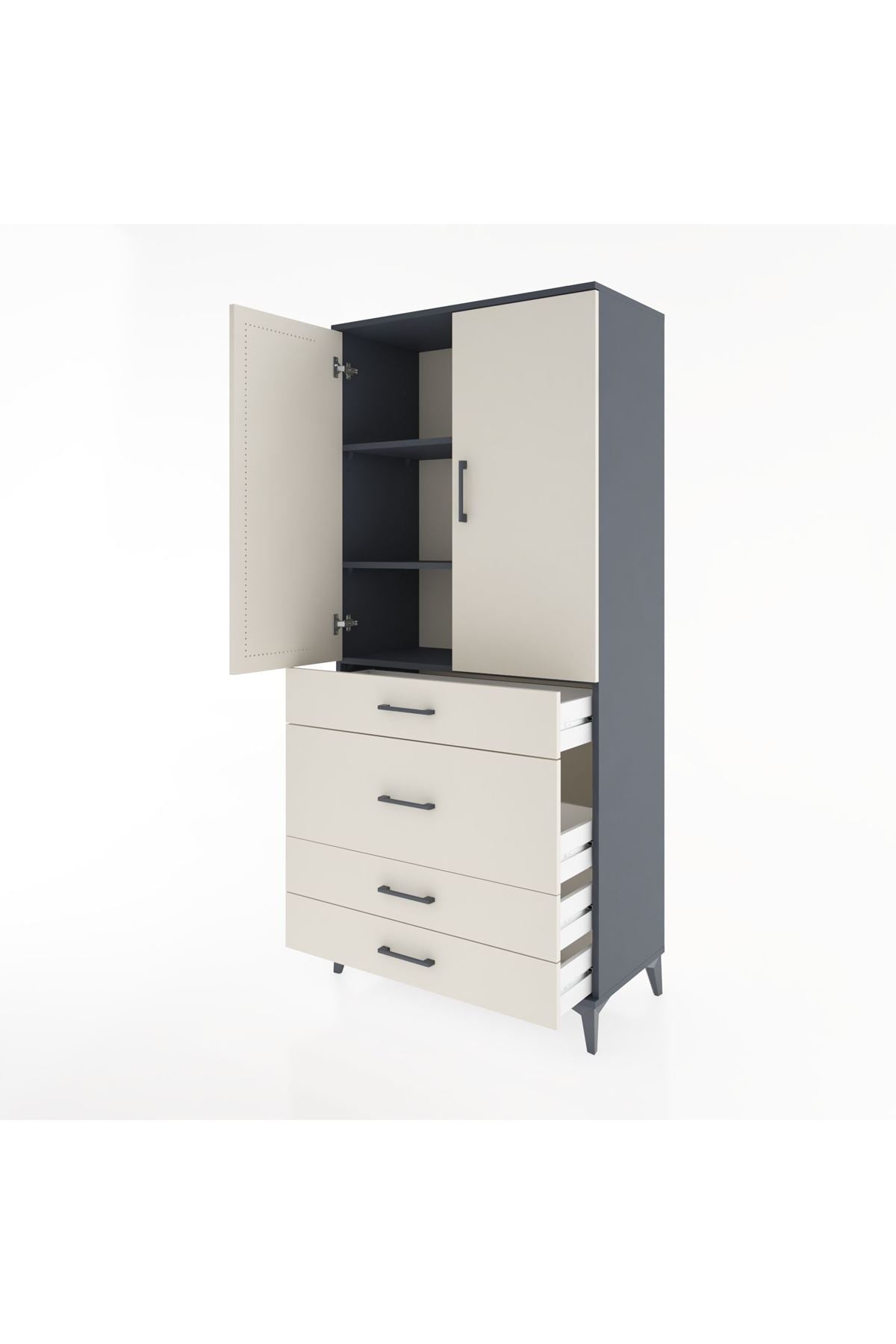Hyperion Dolap 3 Raflı 4 Çekmeceli 2 Kapaklı 88x44x195 Antrasit-Aytaşı