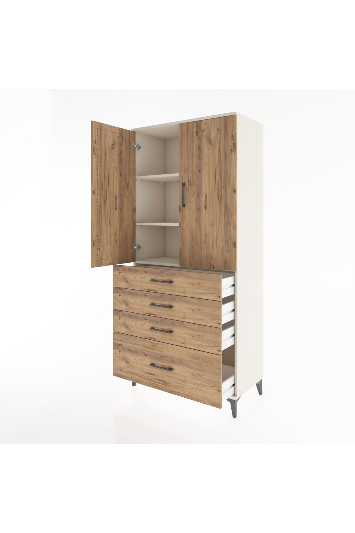 Hyperion Dolap 3 Raflı 4 Çekmeceli 2 Kapaklı 88x44x195 Aytaşı-Çam