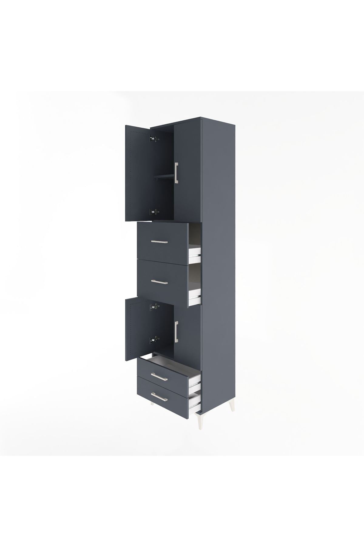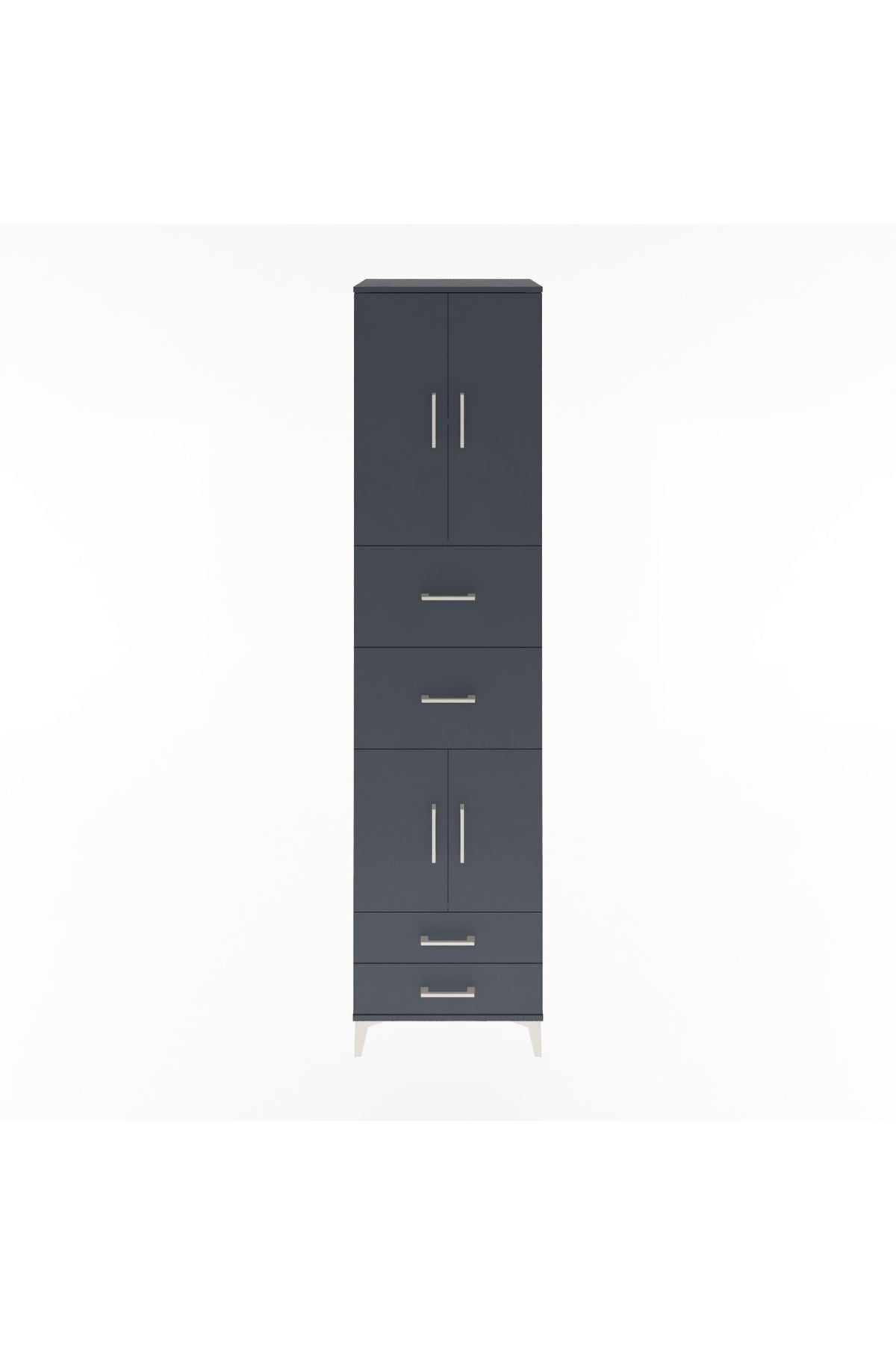 Hyperion Dolap 3 Raflı 4 Çekmeceli 4 Kapaklı 60x44x243 Antrasit-Antrasit