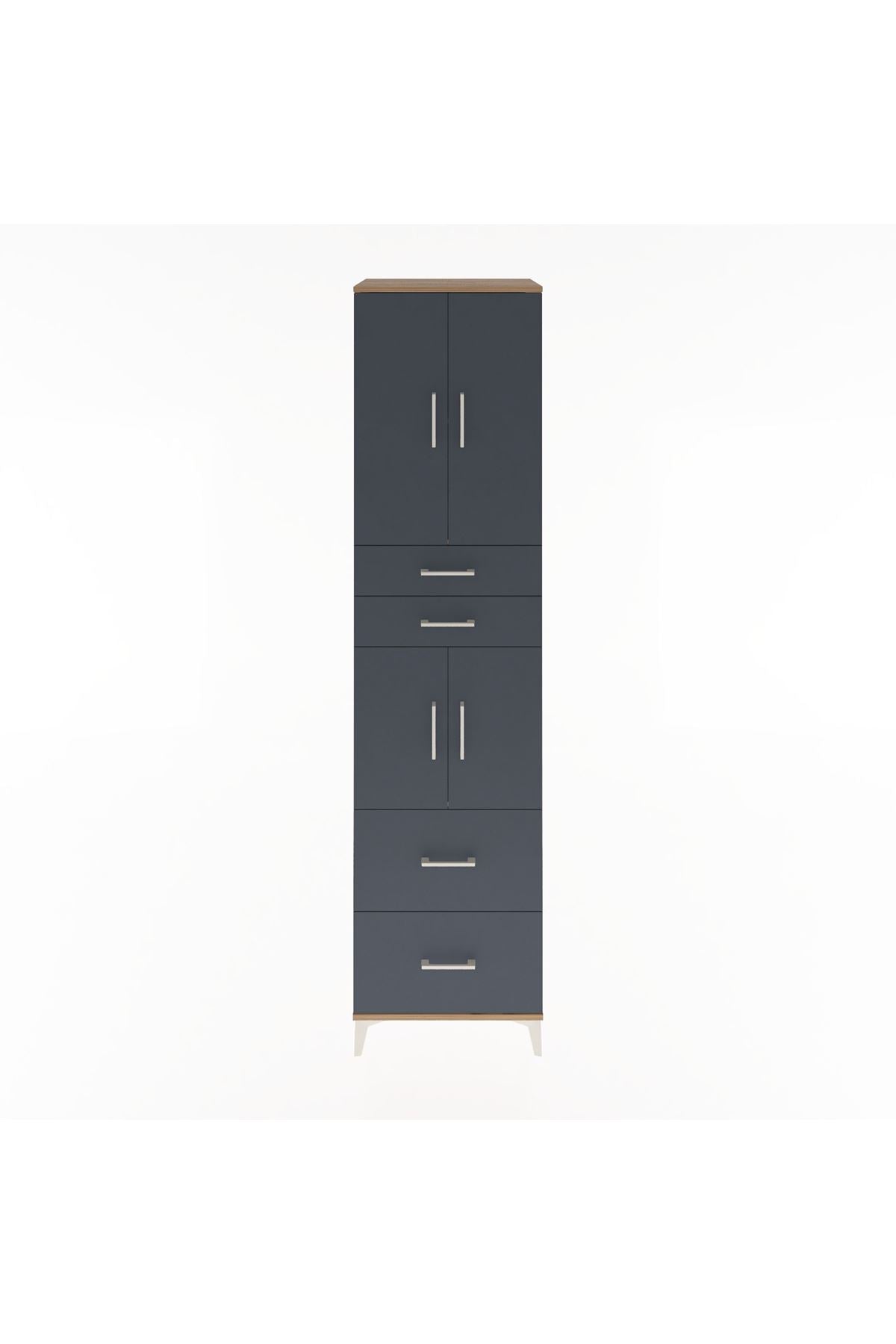 Hyperion Dolap 3 Raflı 4 Çekmeceli 4 Kapaklı 60x44x243 Çam-Antrasit
