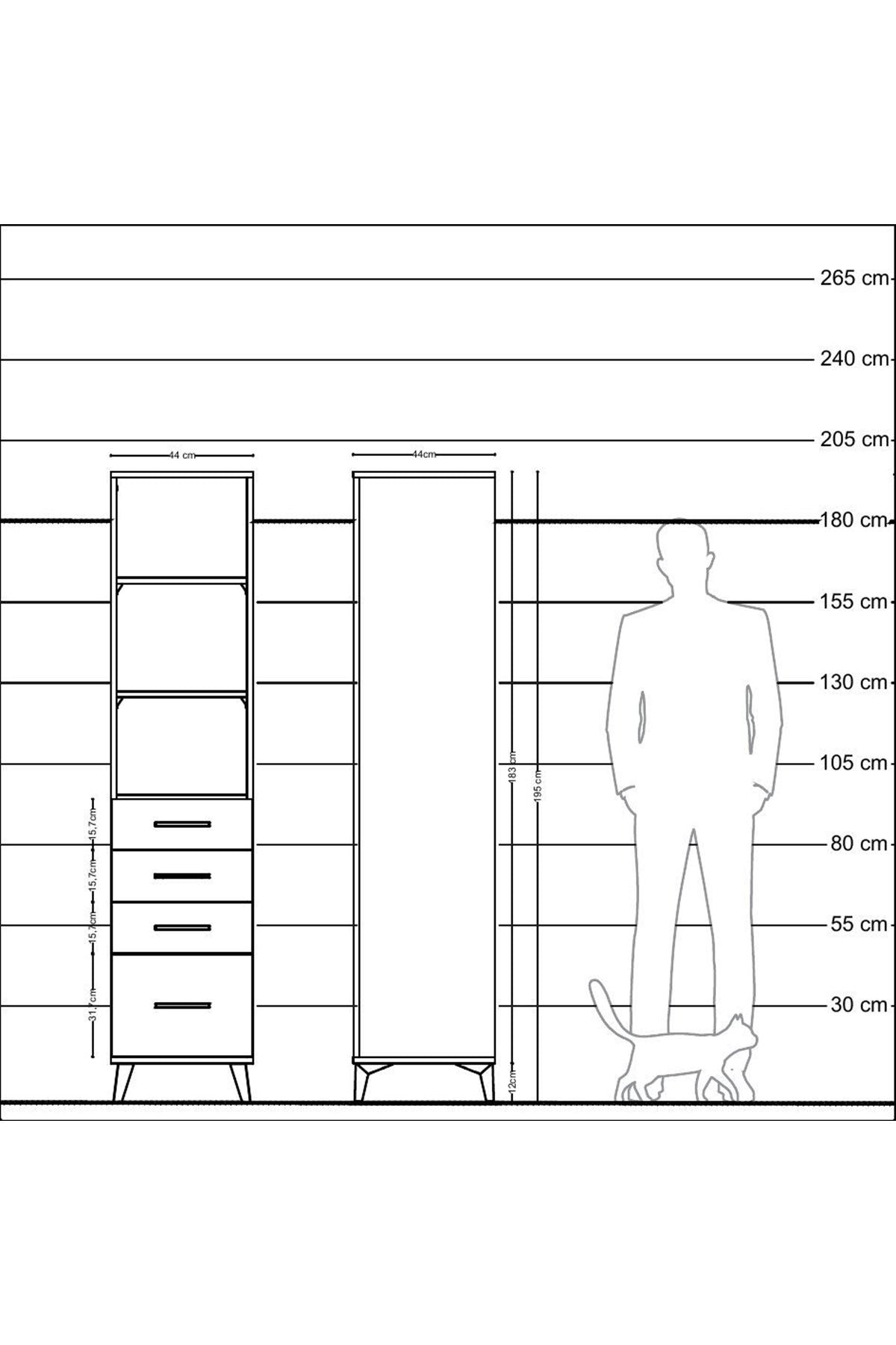 Hyperion Dolap 3 Raflı 4 Çekmeceli 44x44x195 Antrasit-Çam