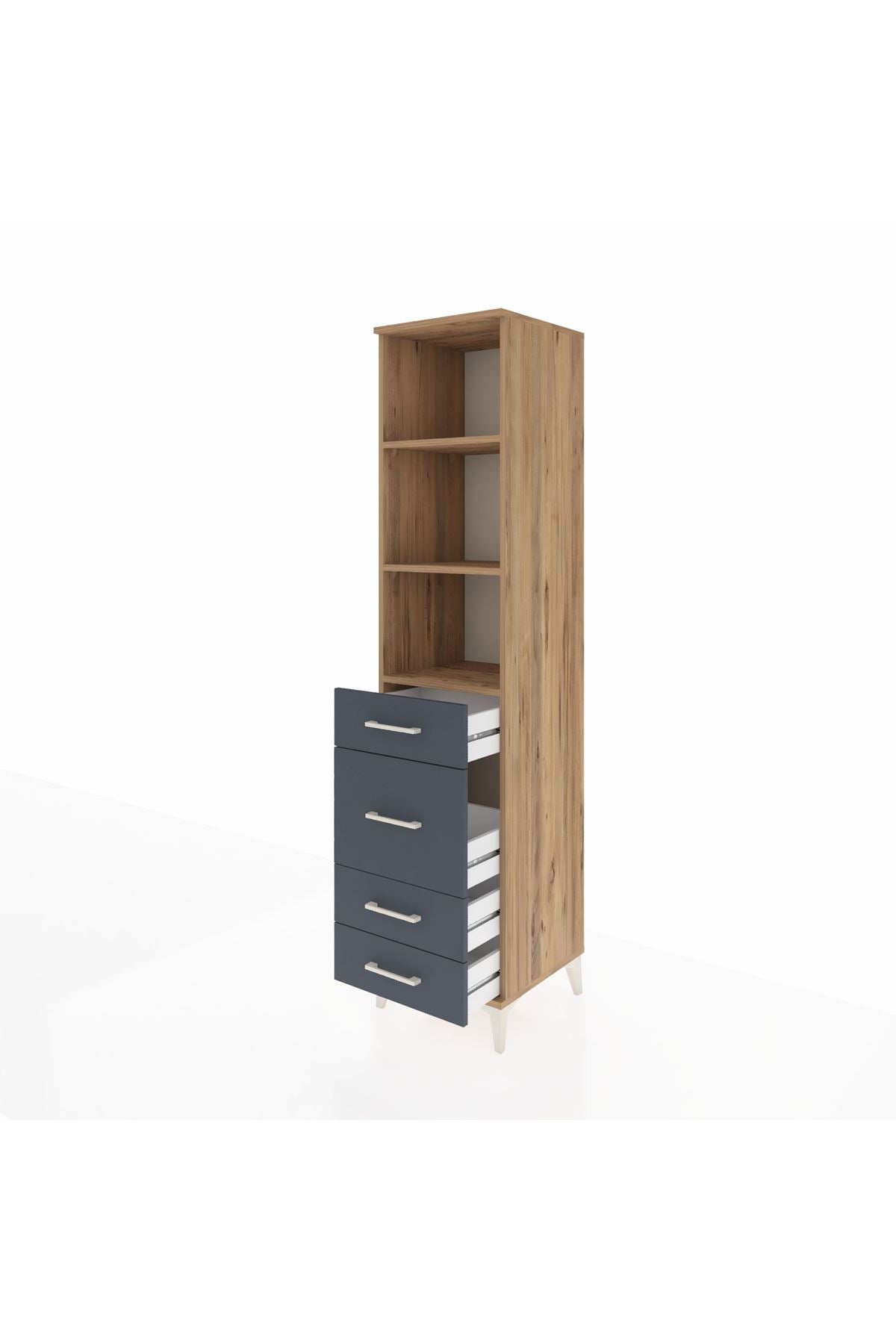 Hyperion Dolap 3 Raflı 4 Çekmeceli 44x44x195 Çam-Antrasit