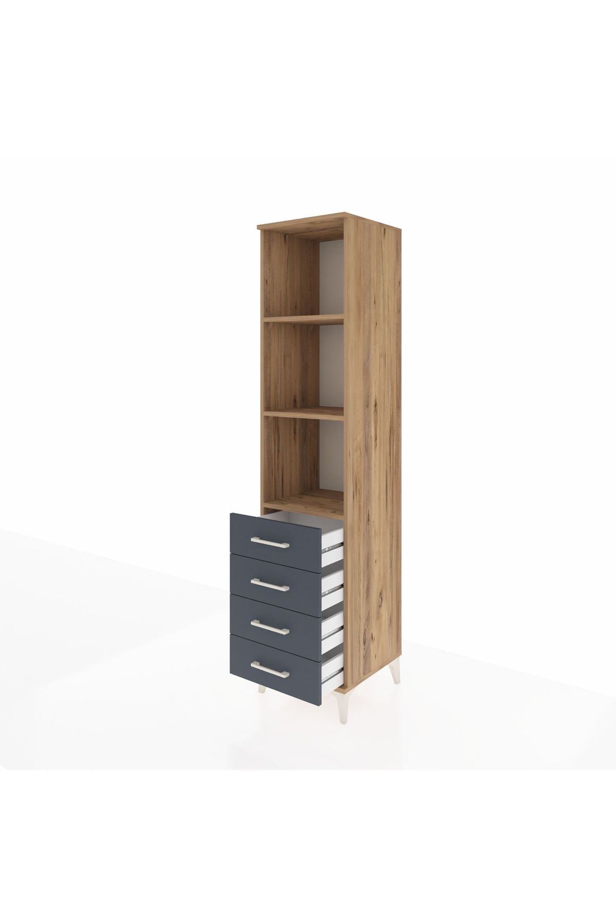 Hyperion Dolap 3 Raflı 4 Çekmeceli 44x44x195 Çam-Antrasit