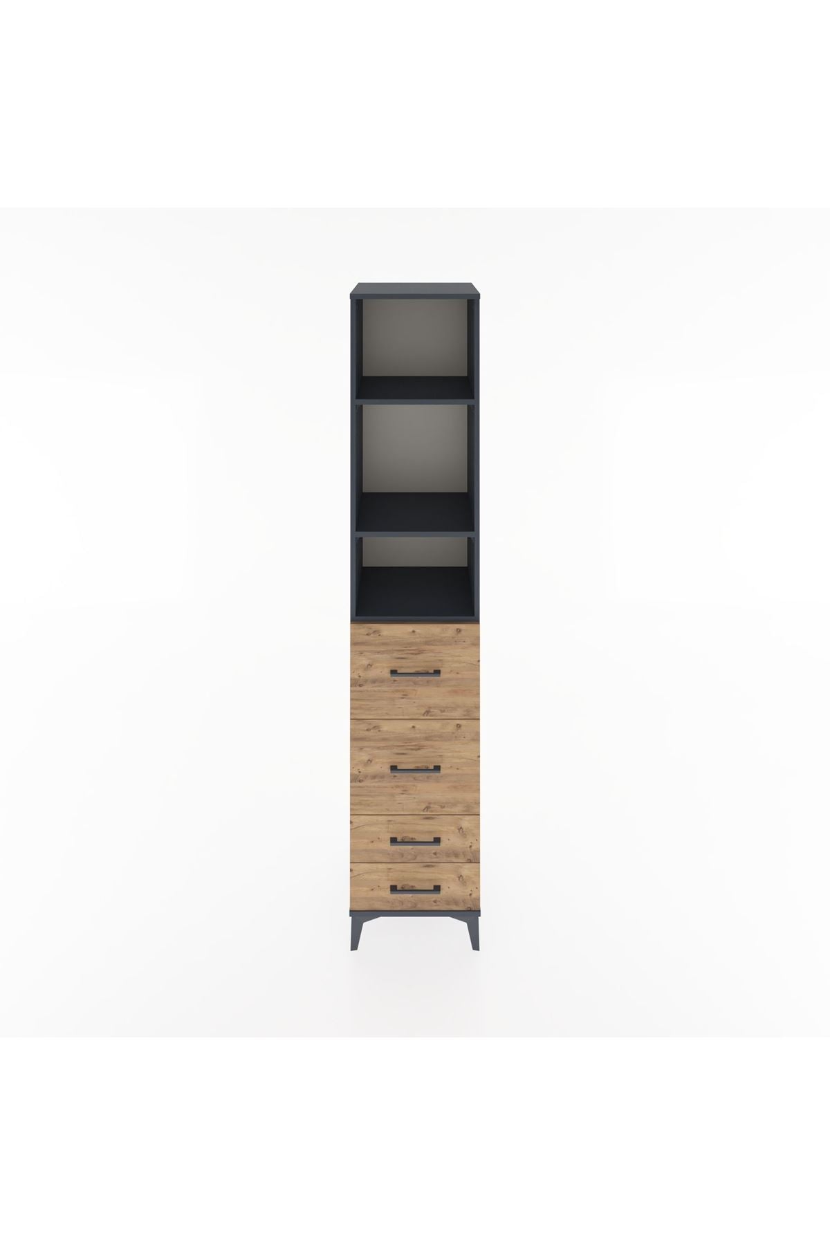 Hyperion Dolap 3 Raflı 4 Çekmeceli 44x44x221 Antrasit-Çam