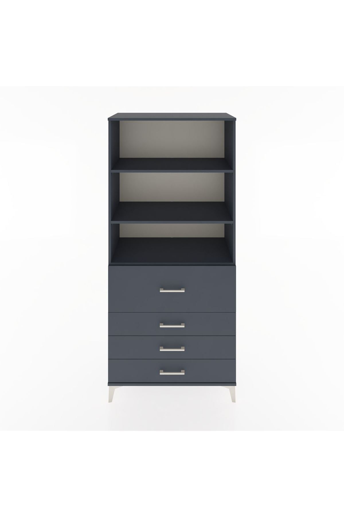 Hyperion Dolap 3 Raflı 4 Çekmeceli 88x44x195 Antrasit-Antrasit