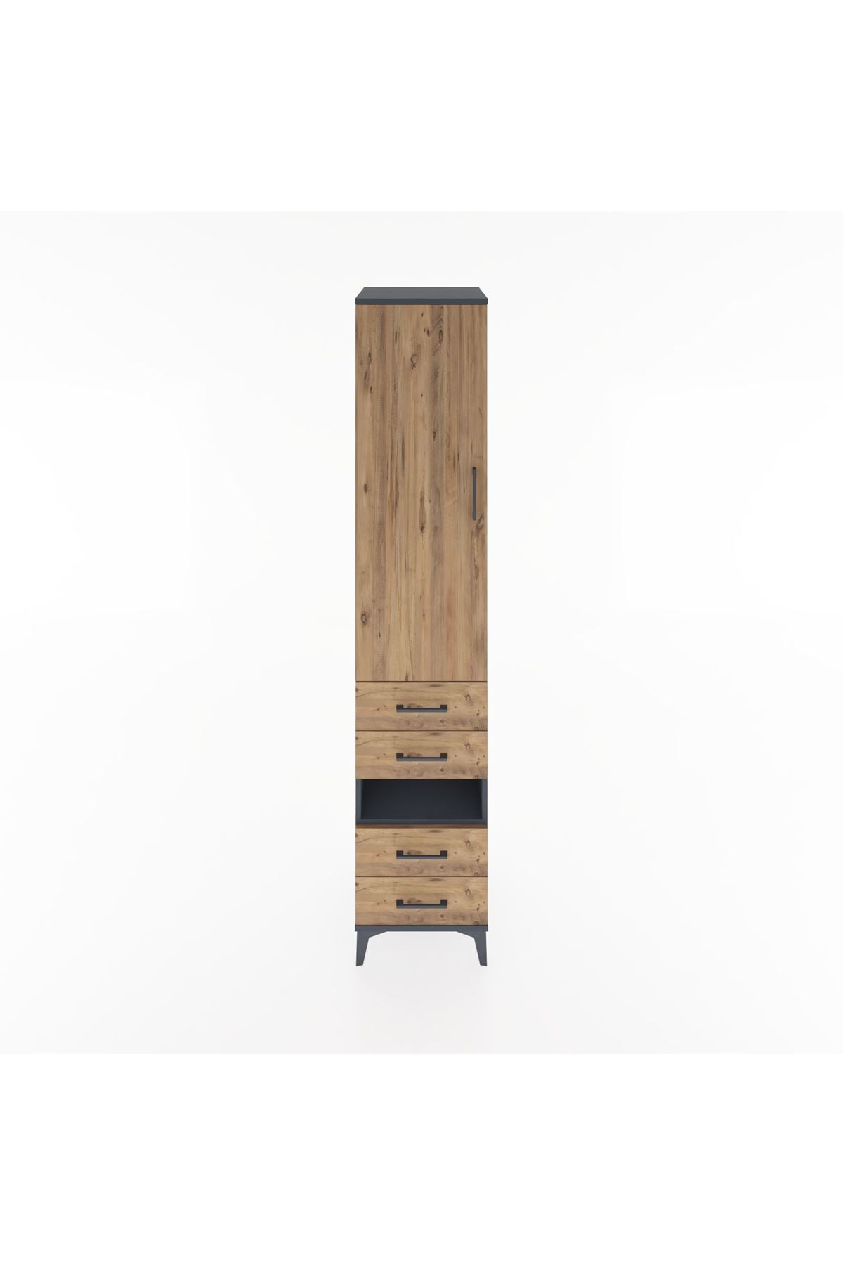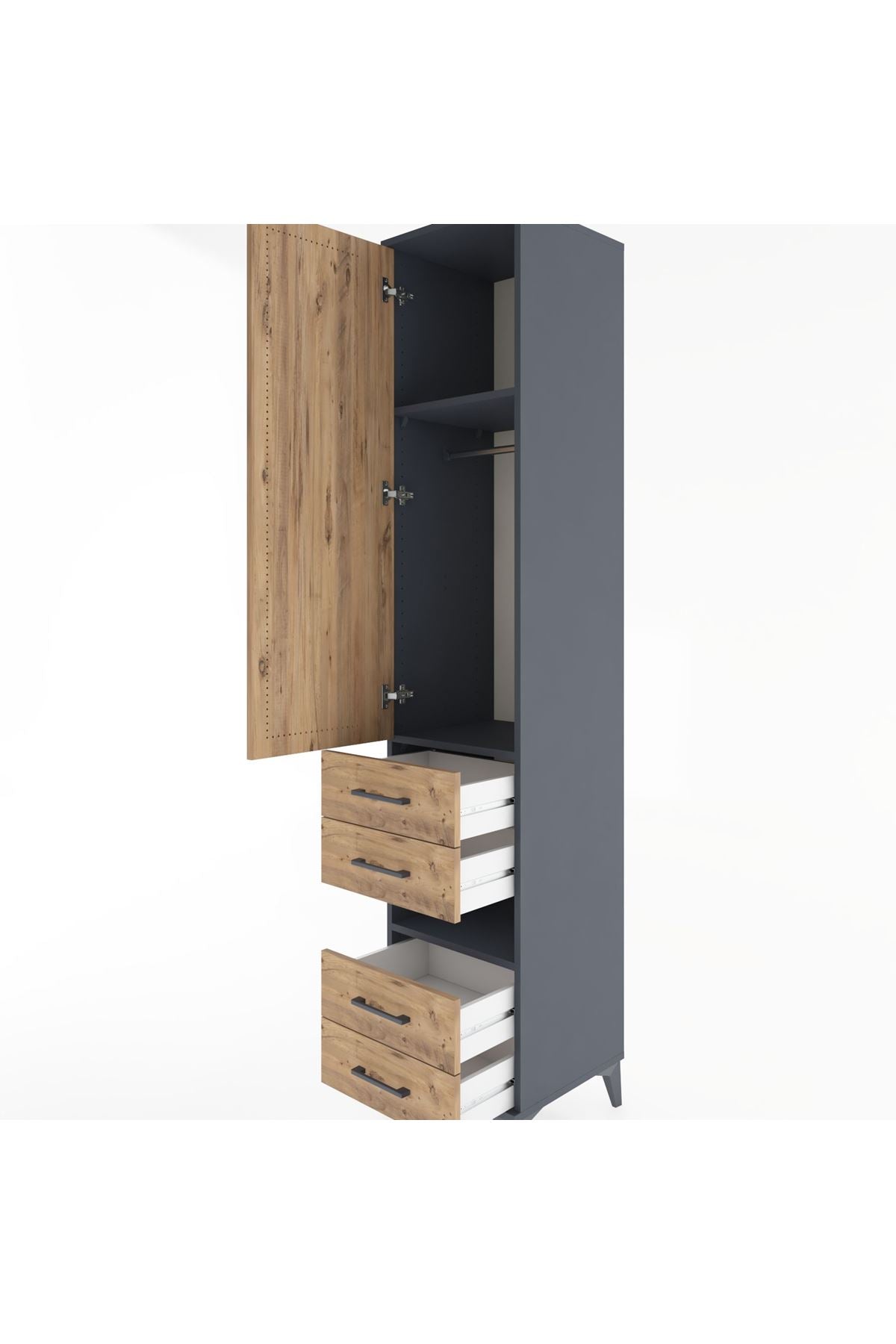 Hyperion Dolap 3 Raflı 4 Çekmeceli Tek Askılı 44x44x221 Antrasit-Çam