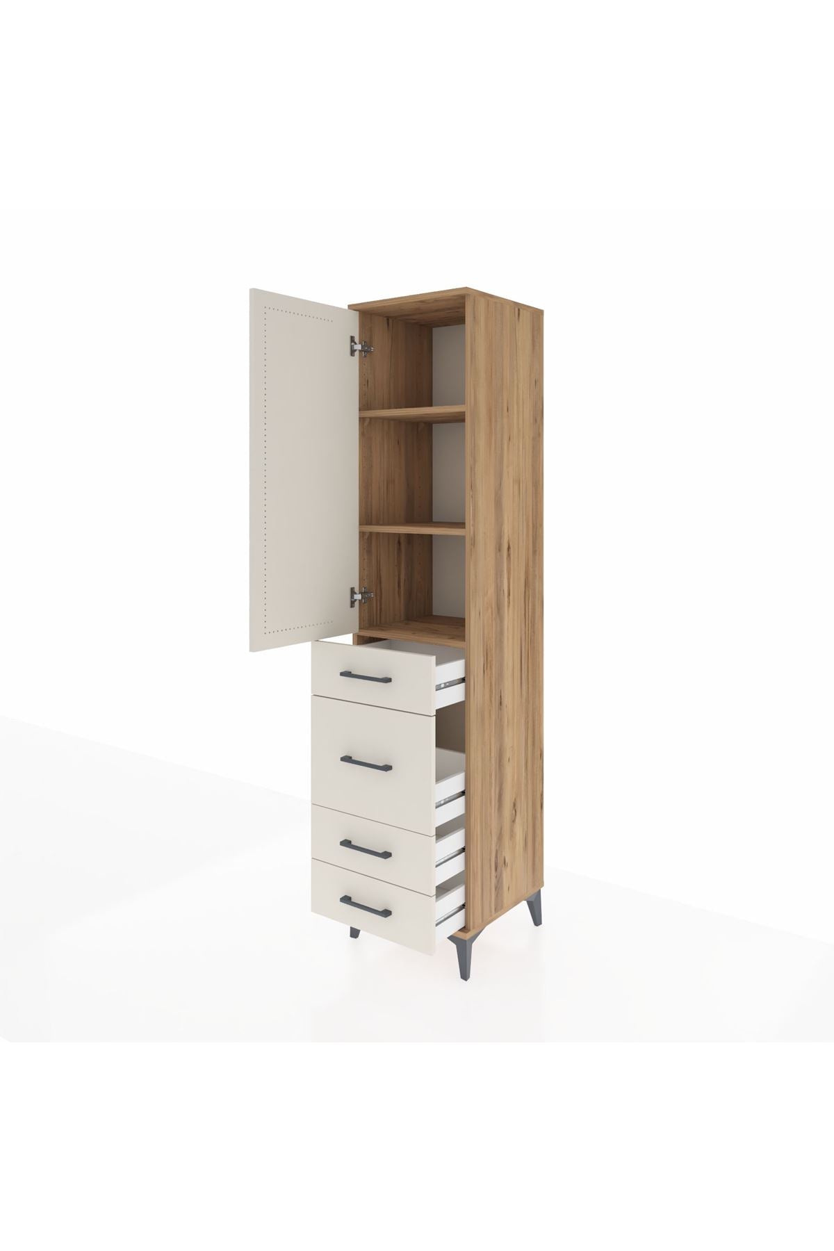 Hyperion Dolap 3 Raflı 4 Çekmeceli Tek Kapaklı 44x44x195 Çam-Aytaşı