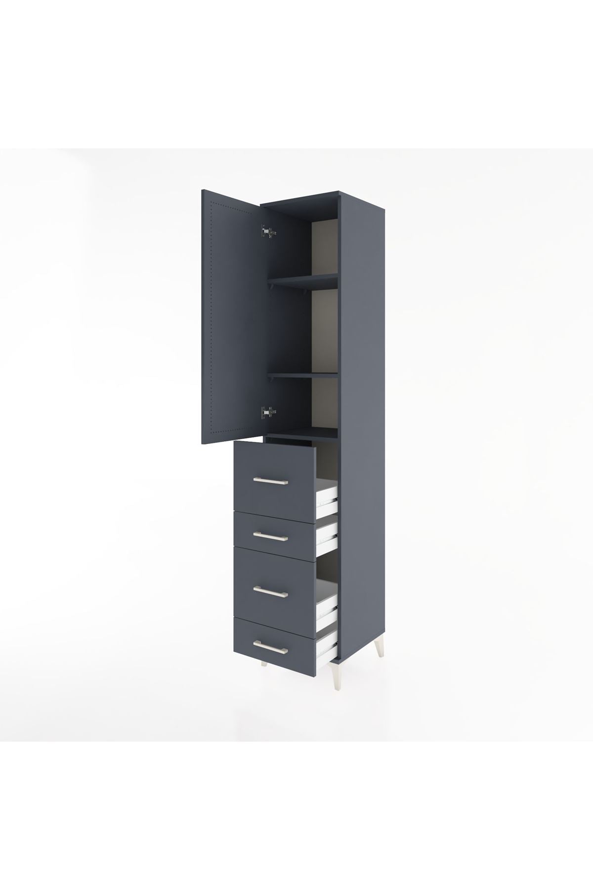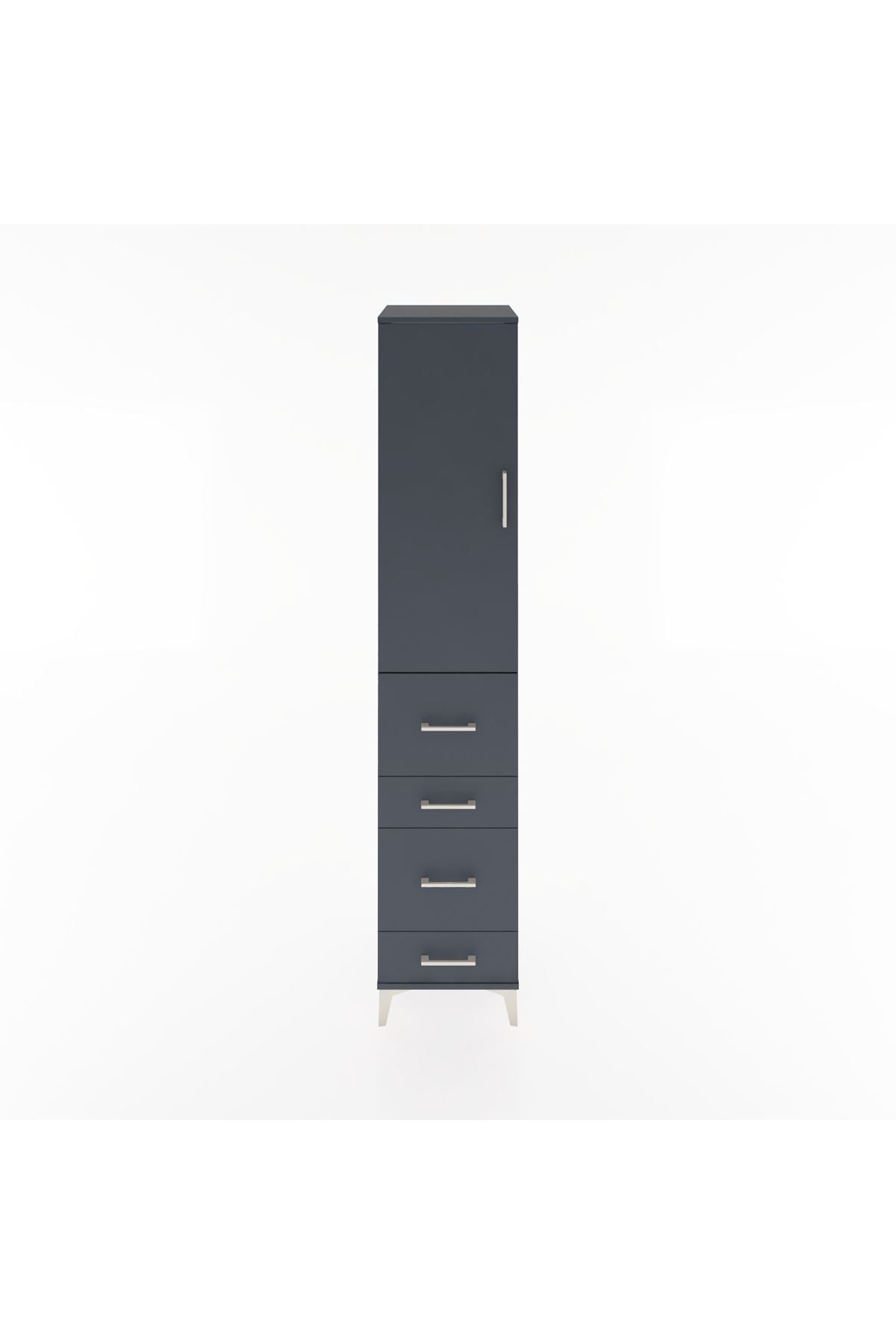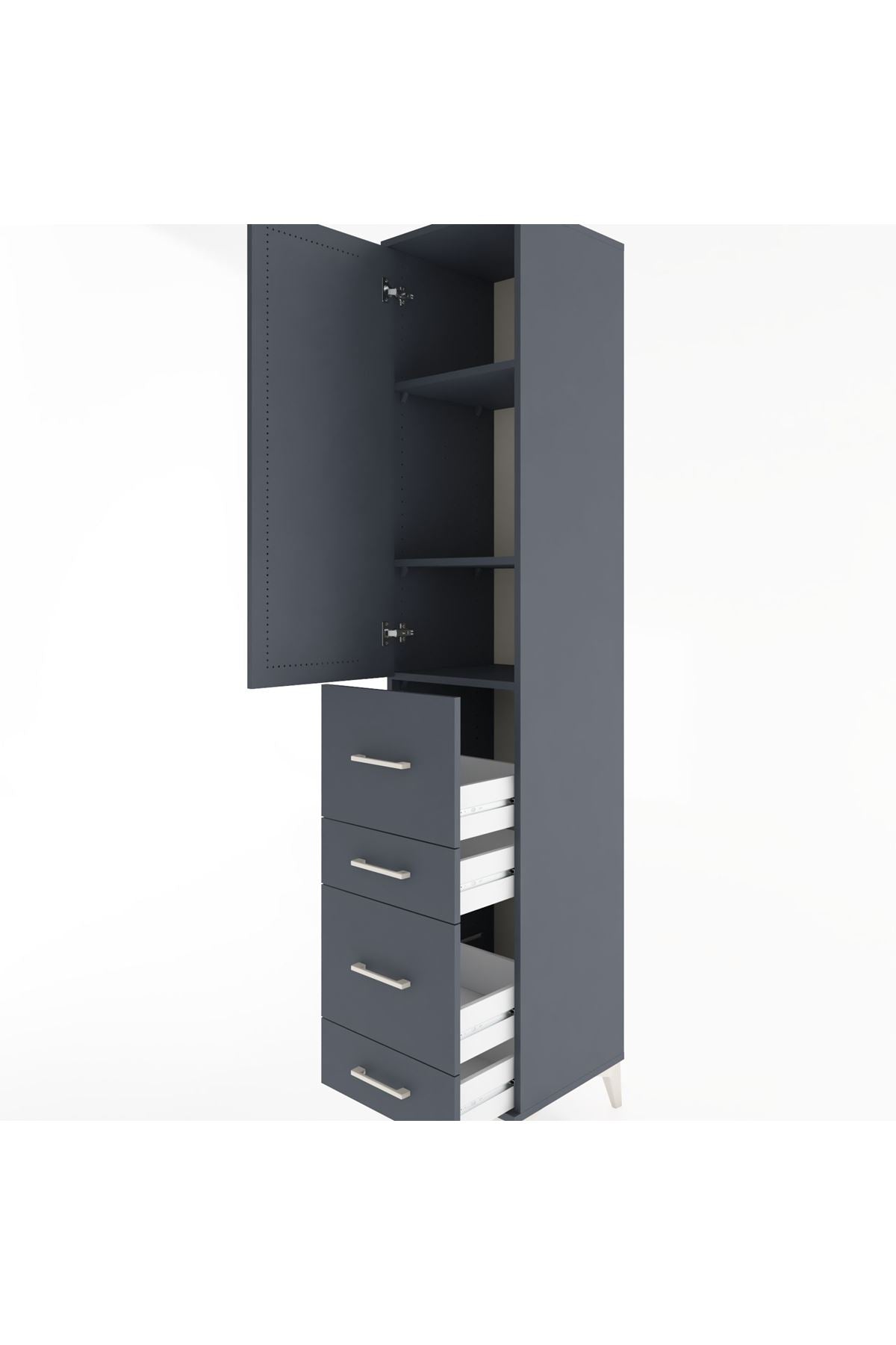 Hyperion Dolap 3 Raflı 4 Çekmeceli Tek Kapaklı 44x44x221 Antrasit-Antrasit