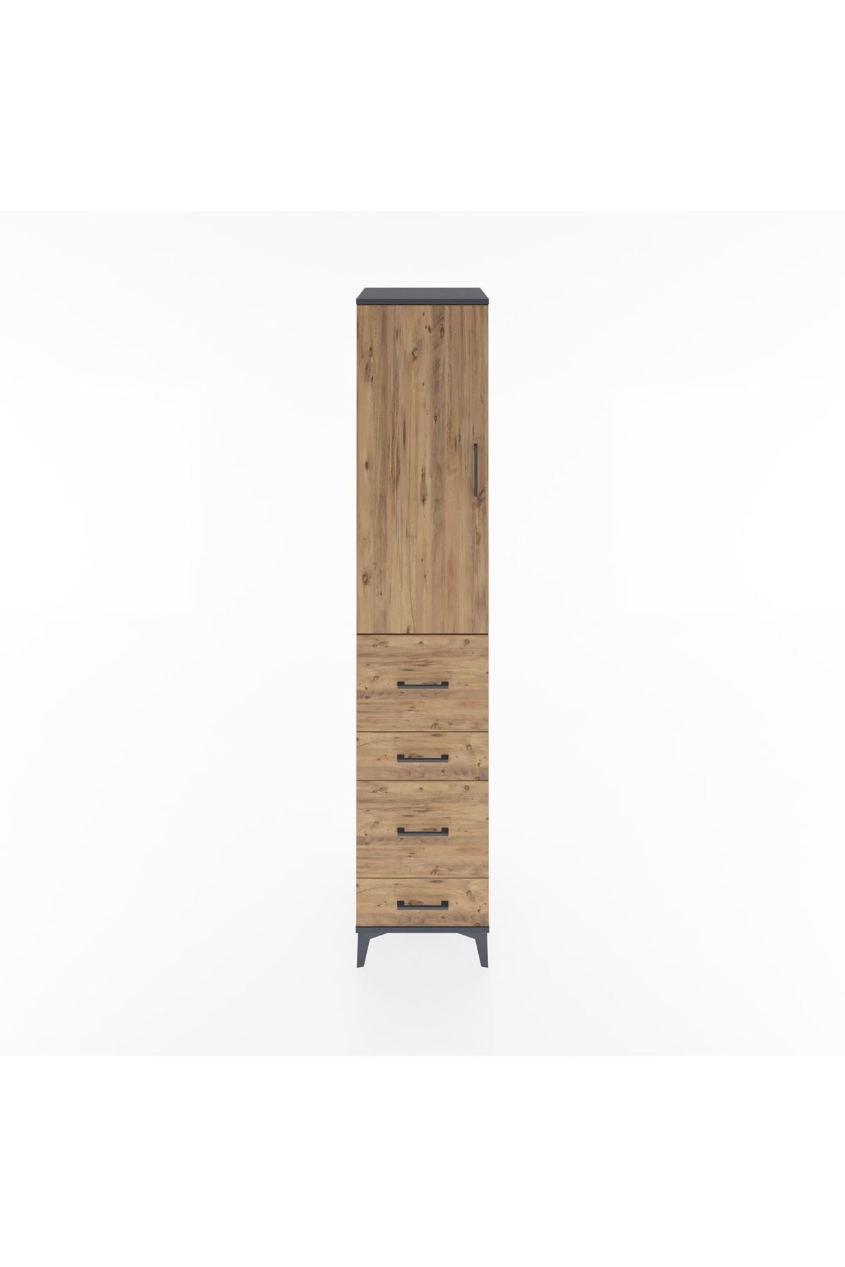 Hyperion Dolap 3 Raflı 4 Çekmeceli Tek Kapaklı 44x44x221 Antrasit-Çam