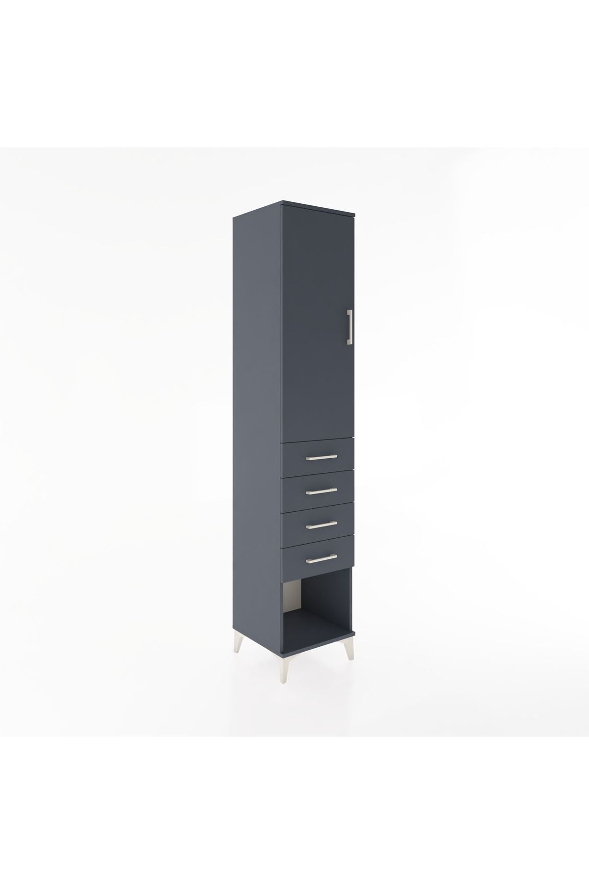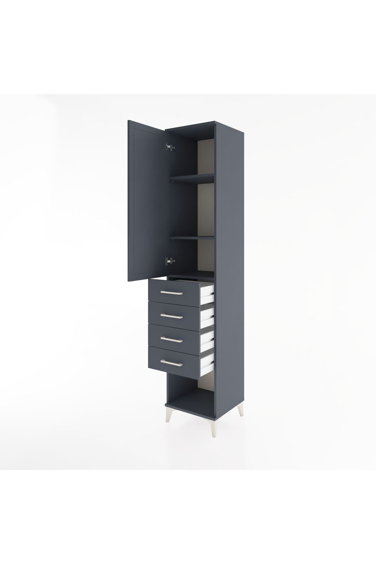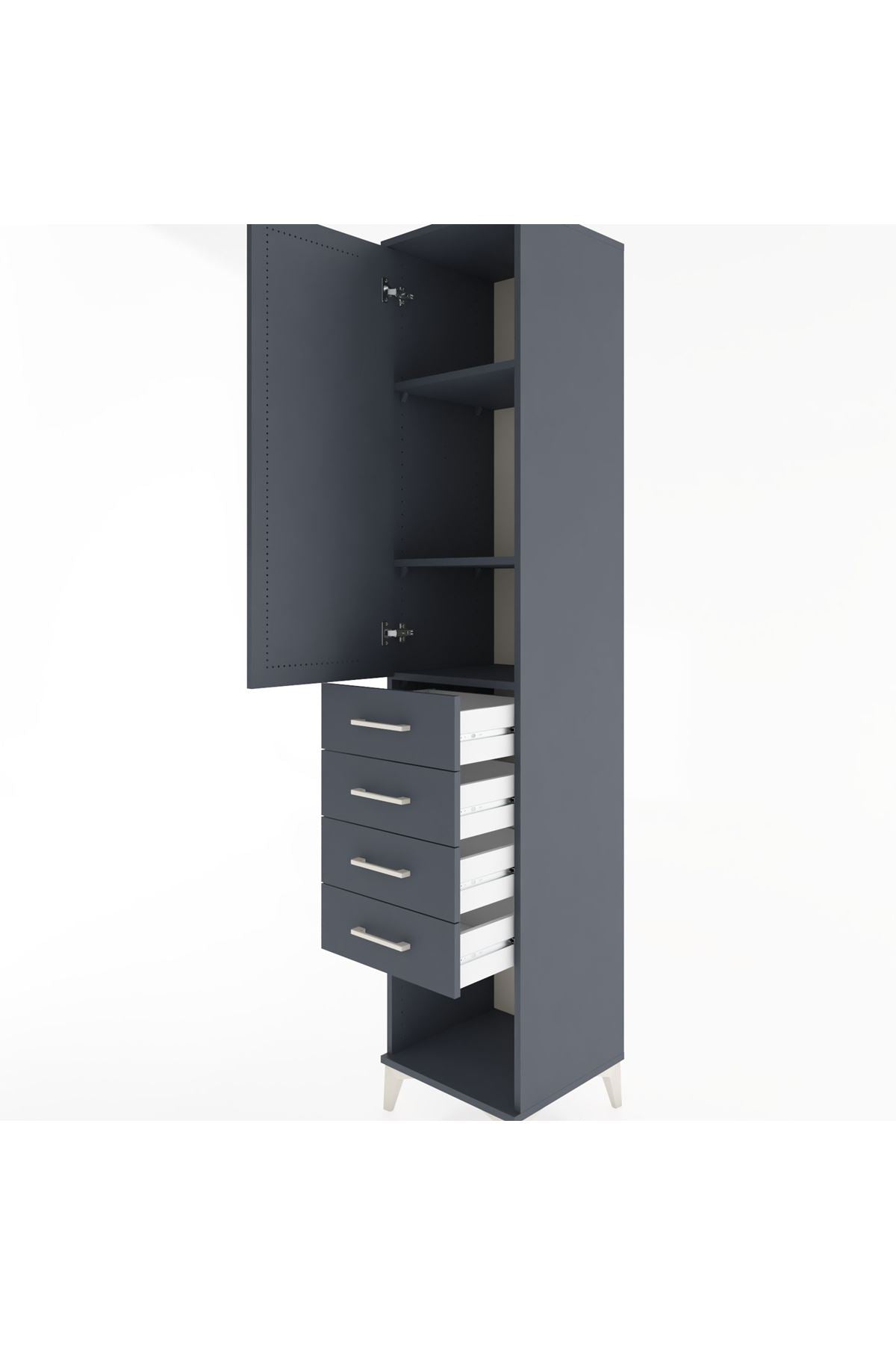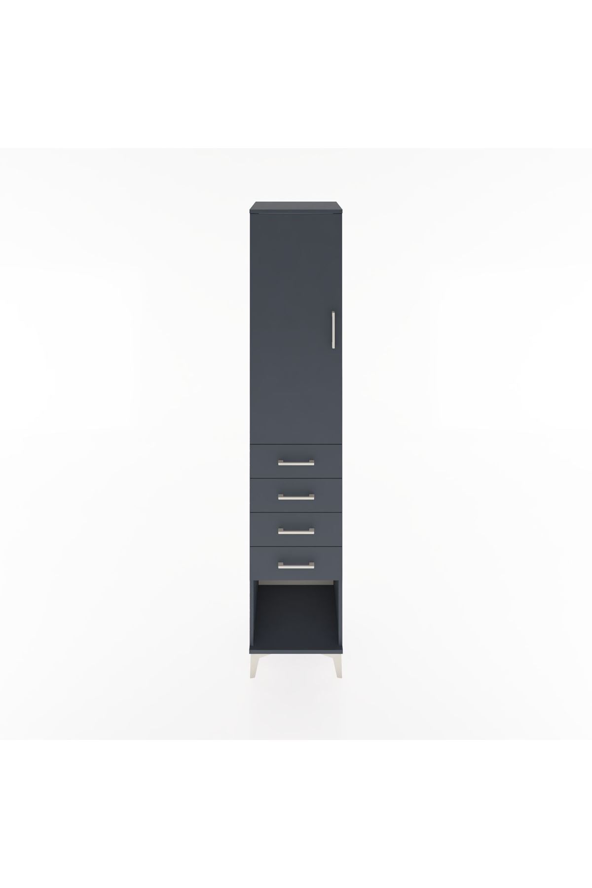 Hyperion Dolap 3 Raflı 4 Çekmeceli Tek Kapaklı 44x44x221 Antrasit-Antrasit