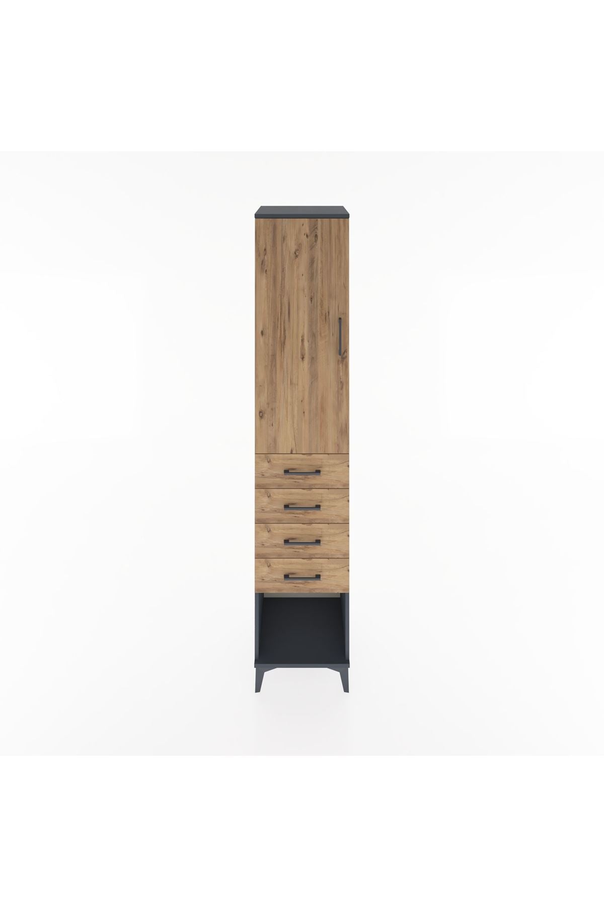 Hyperion Dolap 3 Raflı 4 Çekmeceli Tek Kapaklı 44x44x221 Antrasit-Çam