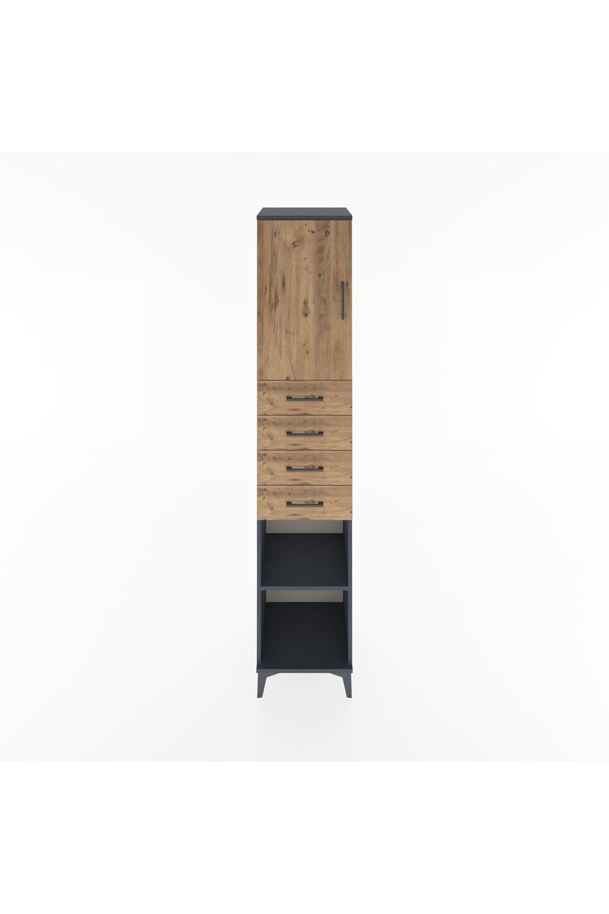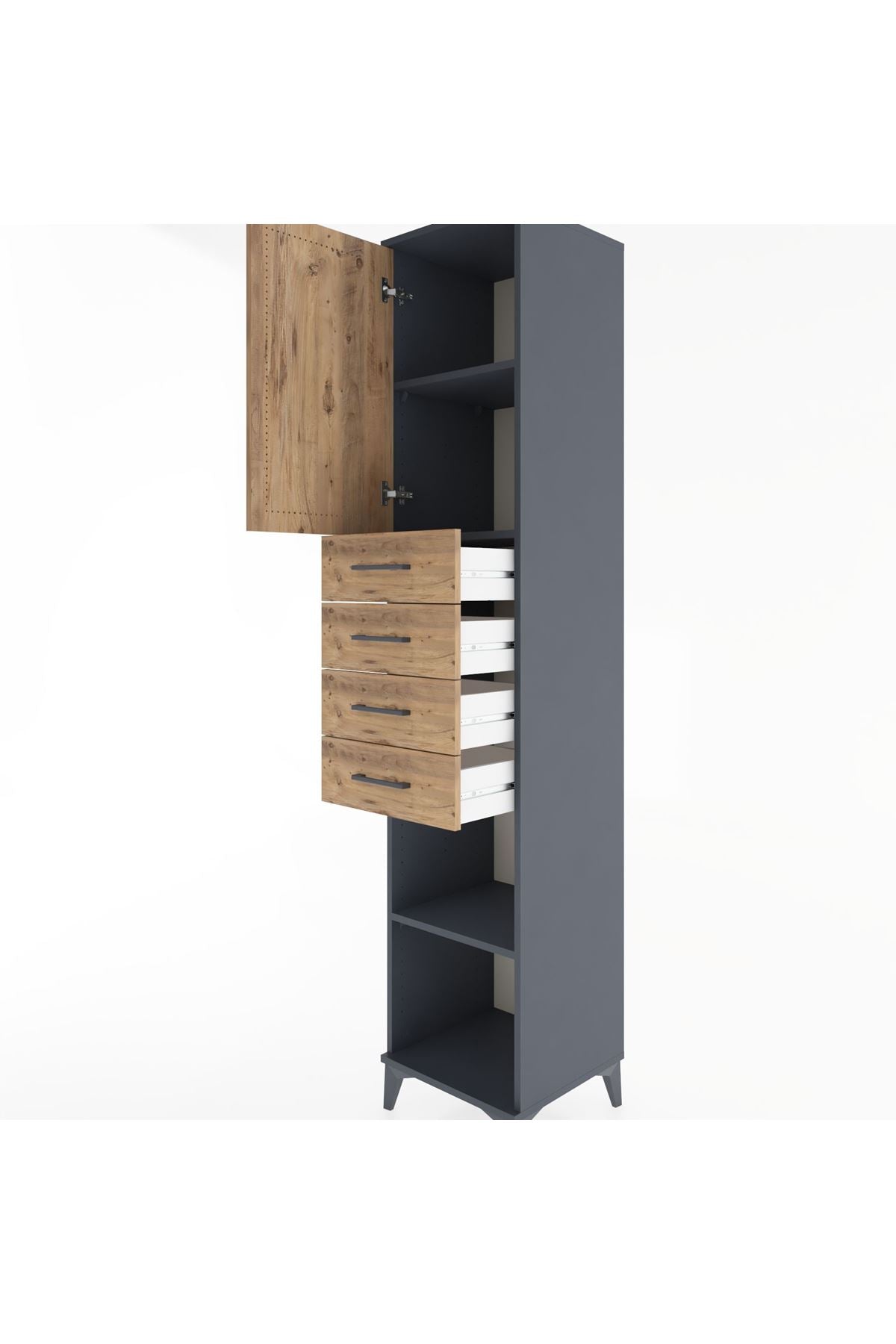 Hyperion Dolap 3 Raflı 4 Çekmeceli Tek Kapaklı 44x44x221 Antrasit-Çam