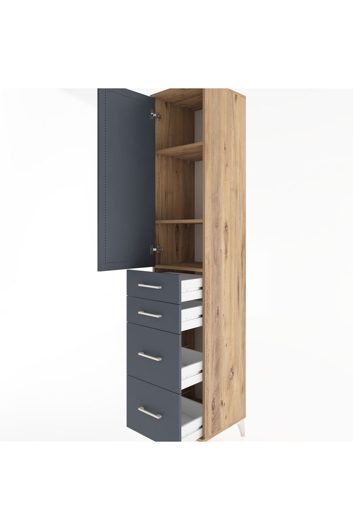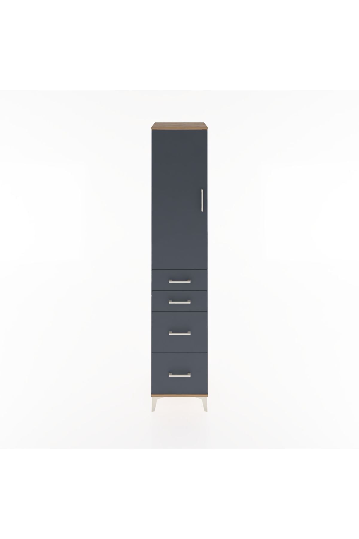 Hyperion Dolap 3 Raflı 4 Çekmeceli Tek Kapaklı 44x44x221 Çam-Antrasit