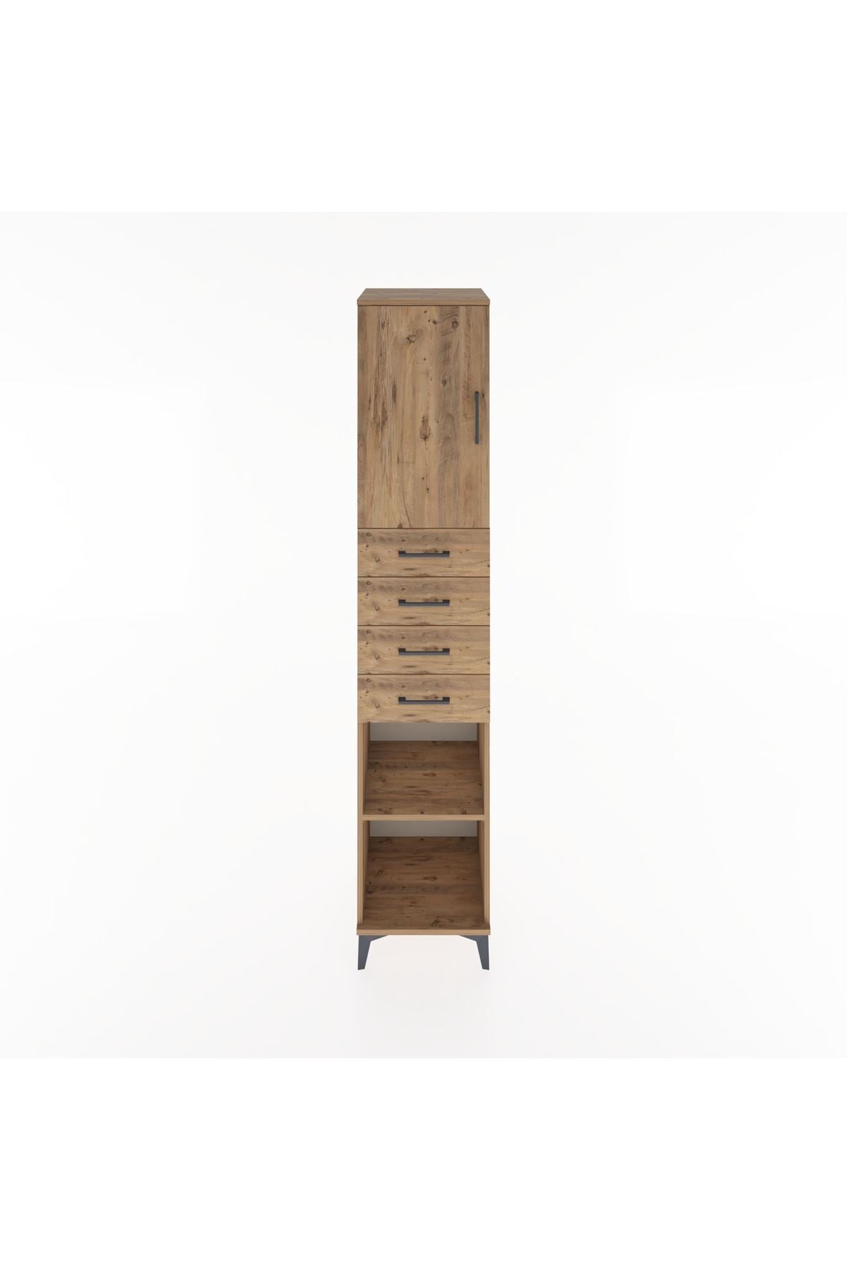 Hyperion Dolap 3 Raflı 4 Çekmeceli Tek Kapaklı 44x44x221 Çam-Çam
