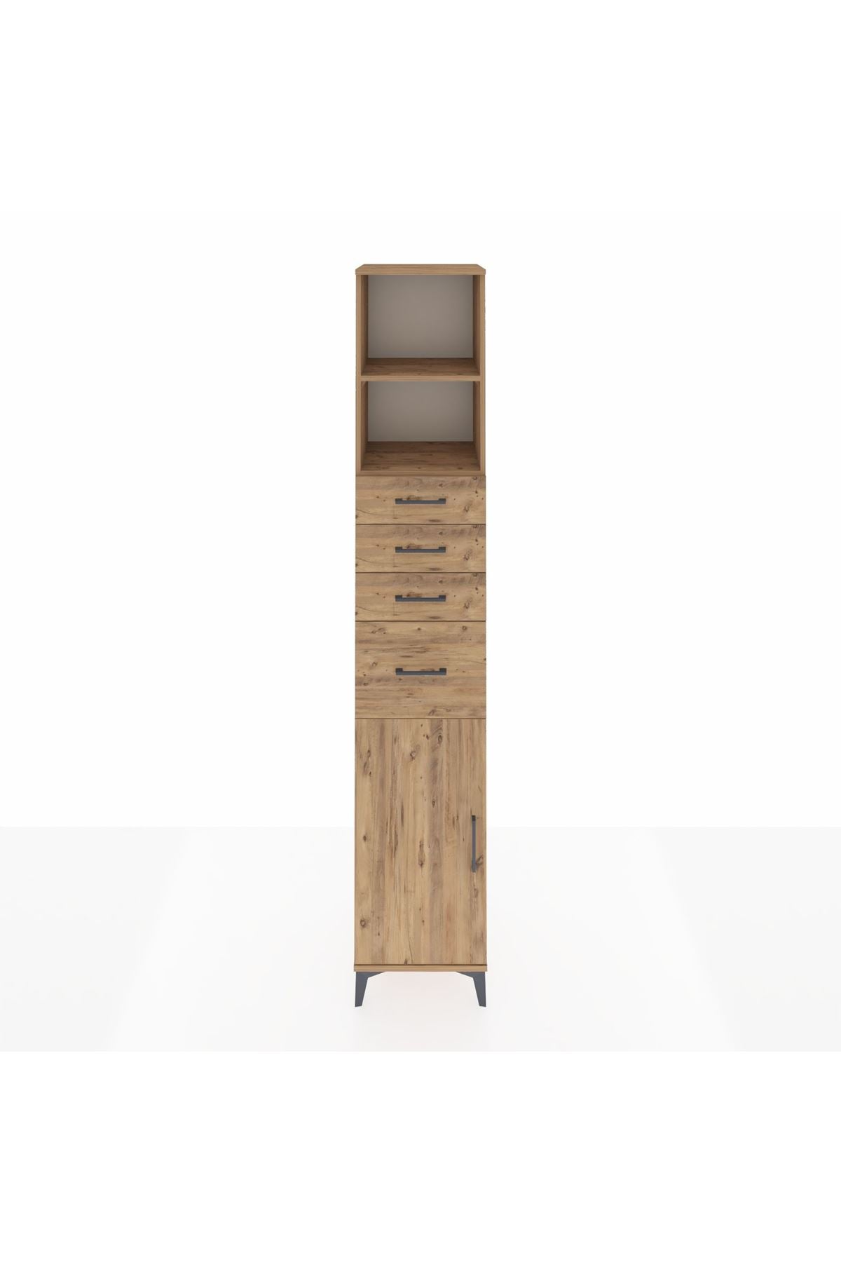 Hyperion Dolap 3 Raflı 4 Çekmeceli Tek Kapaklı 44x44x243 Çam-Çam
