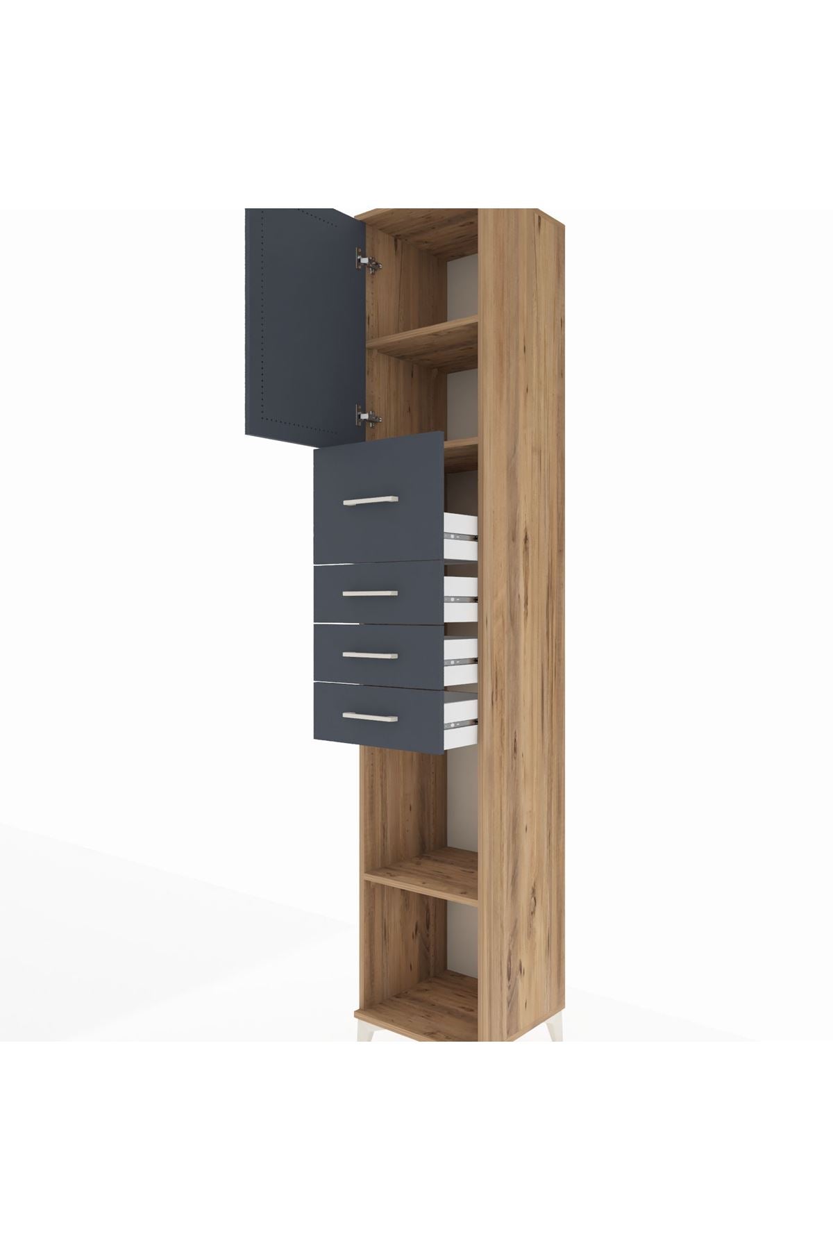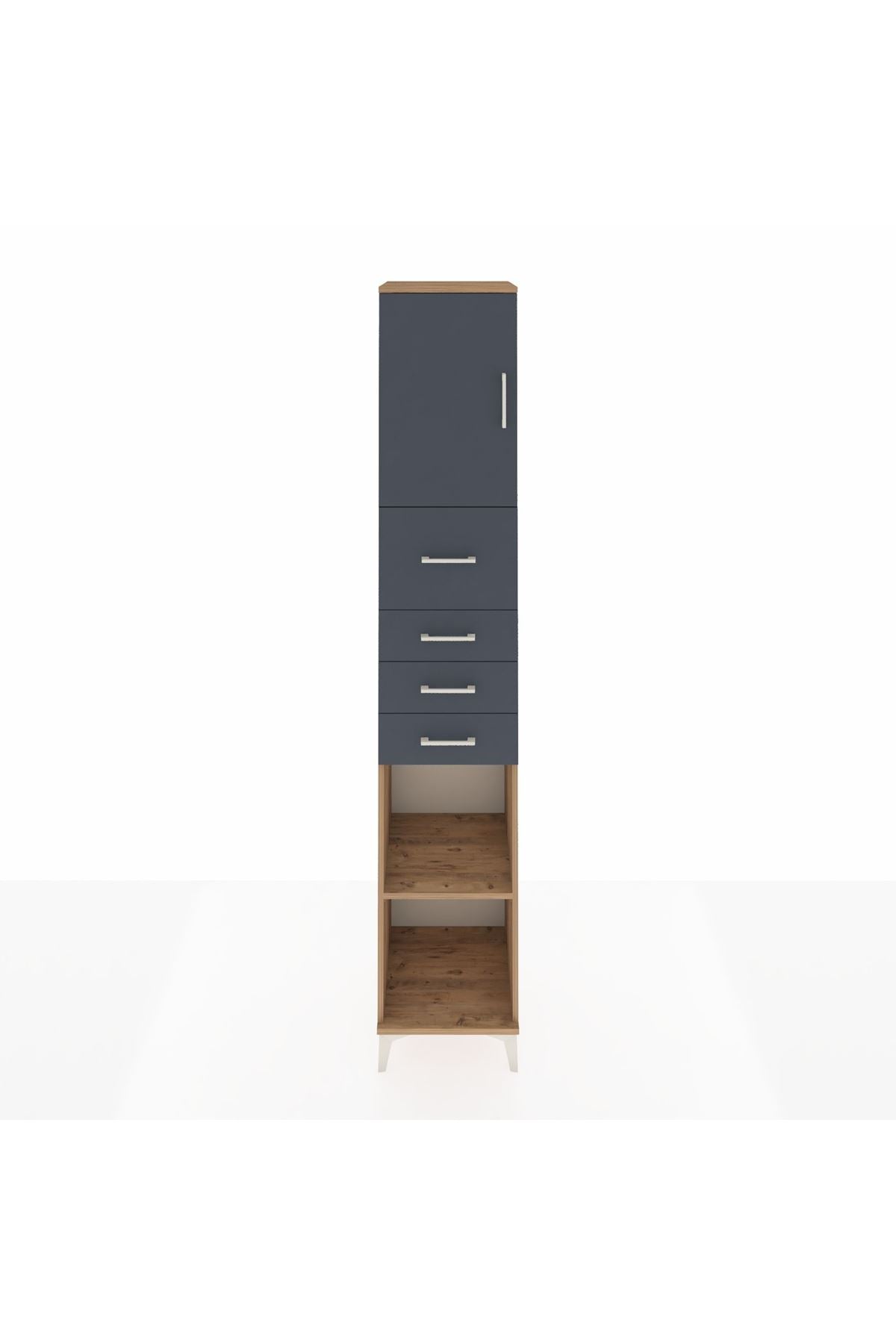 Hyperion Dolap 3 Raflı 4 Çekmeceli Tek Kapaklı 44x44x243 Çam-Antrasit