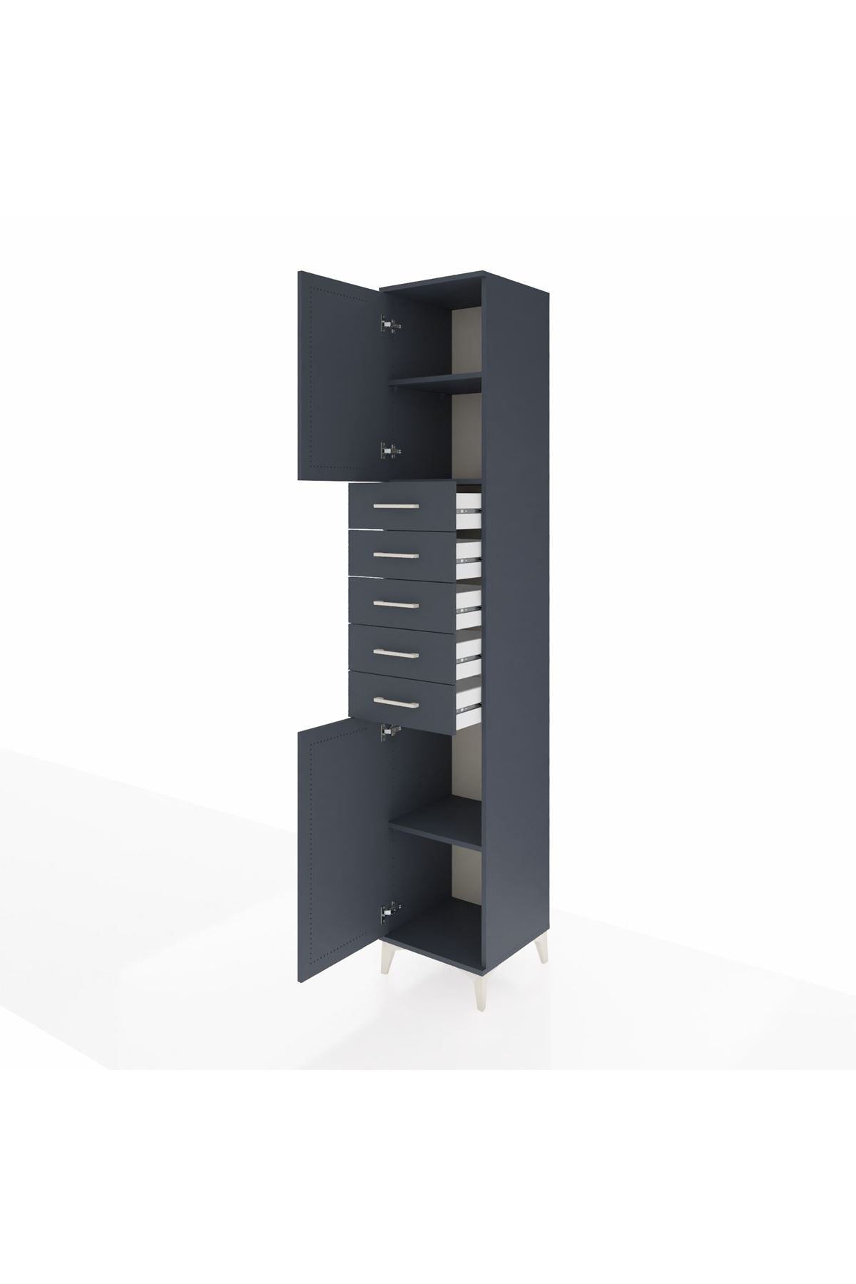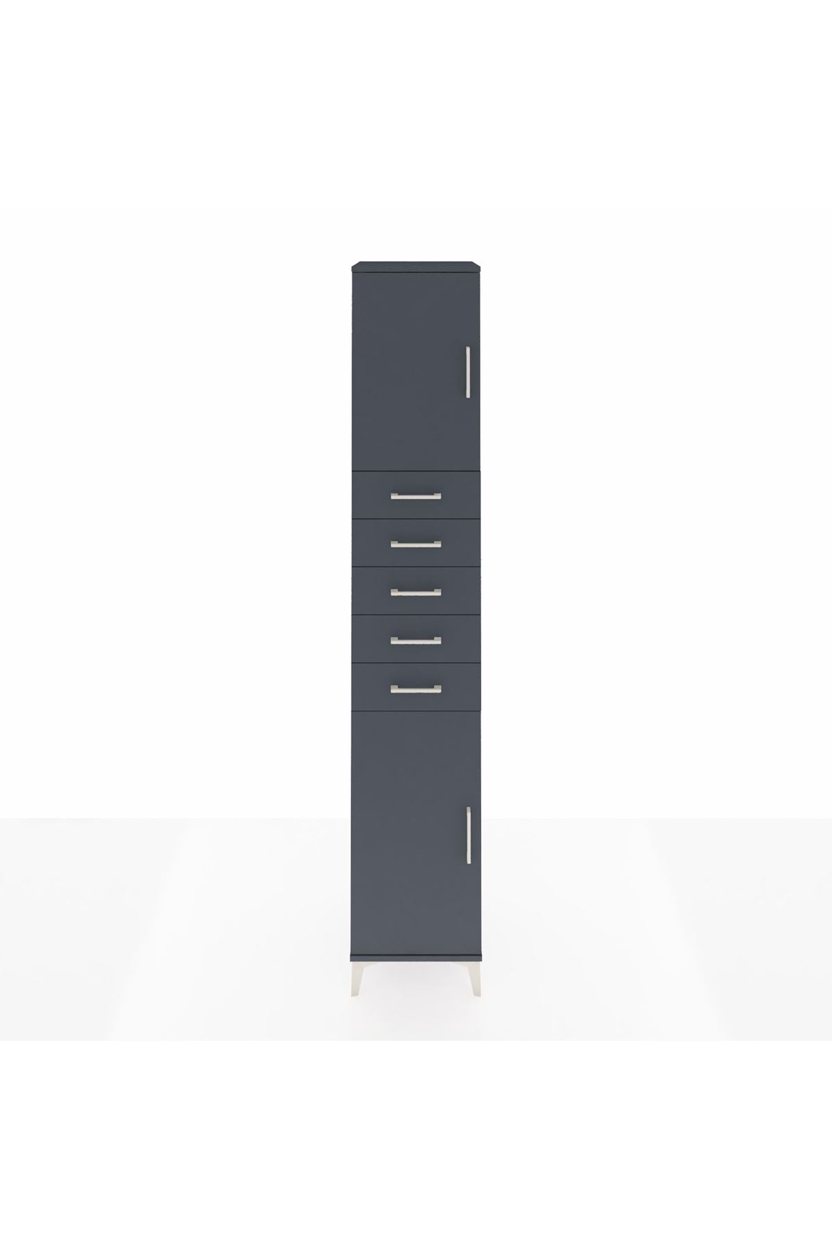 Hyperion Dolap 3 Raflı 5 Çekmeceli 2 Kapaklı 44x44x243 Antrasit-Antrasit