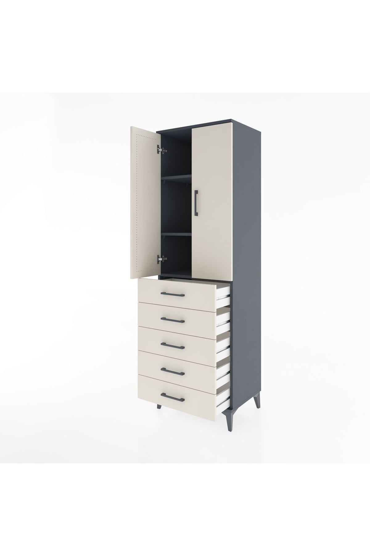 Hyperion Dolap 3 Raflı 5 Çekmeceli 2 Kapaklı 60x44x195 Antrasit-Aytaşı