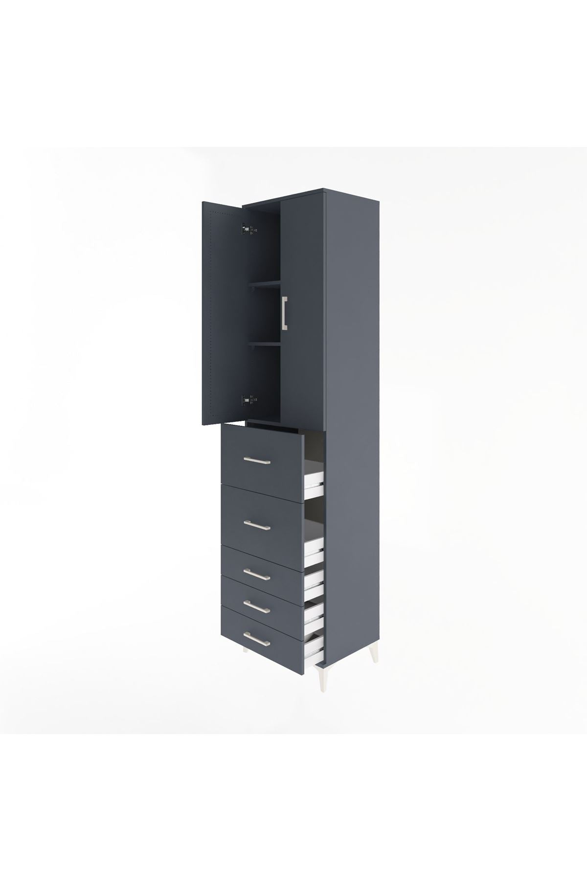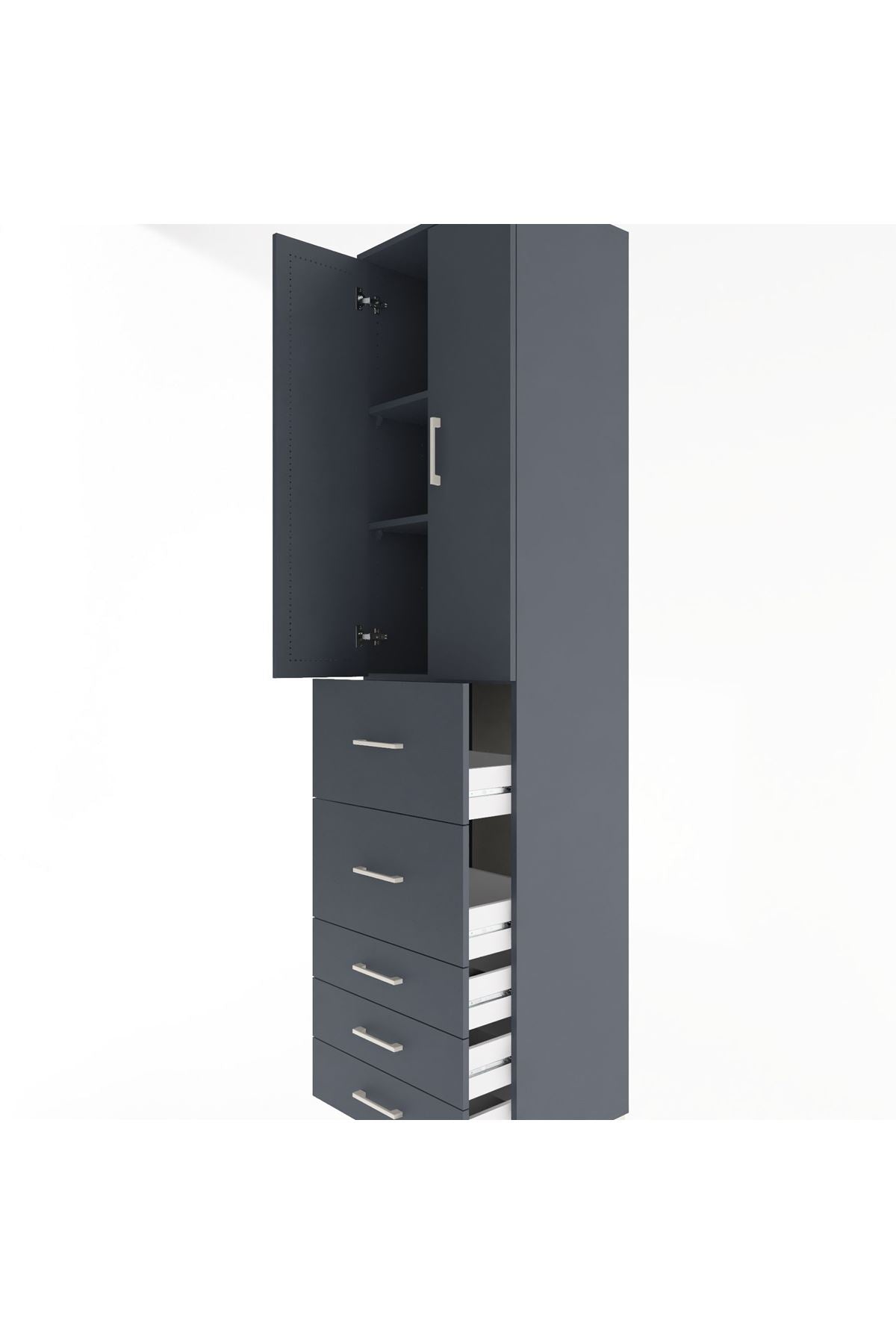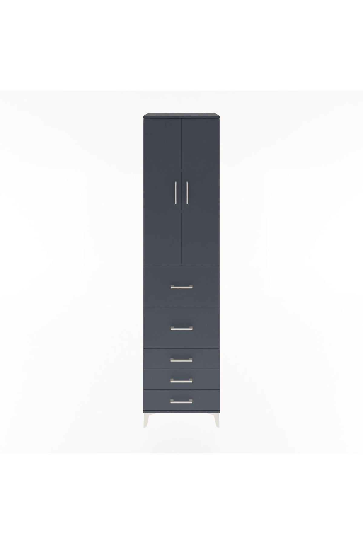 Hyperion Dolap 3 Raflı 5 Çekmeceli 2 Kapaklı 60x44x243 Antrasit-Antrasit