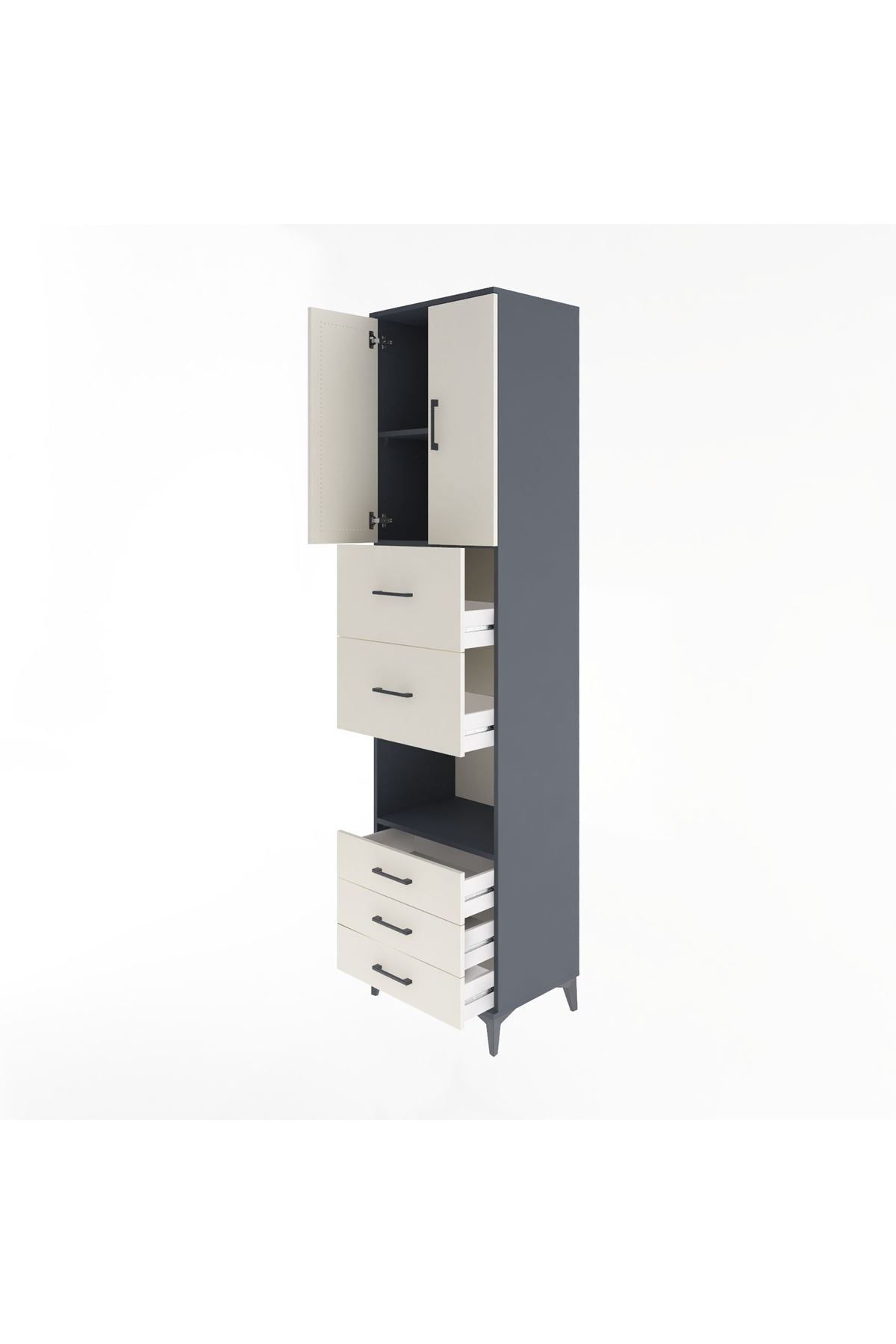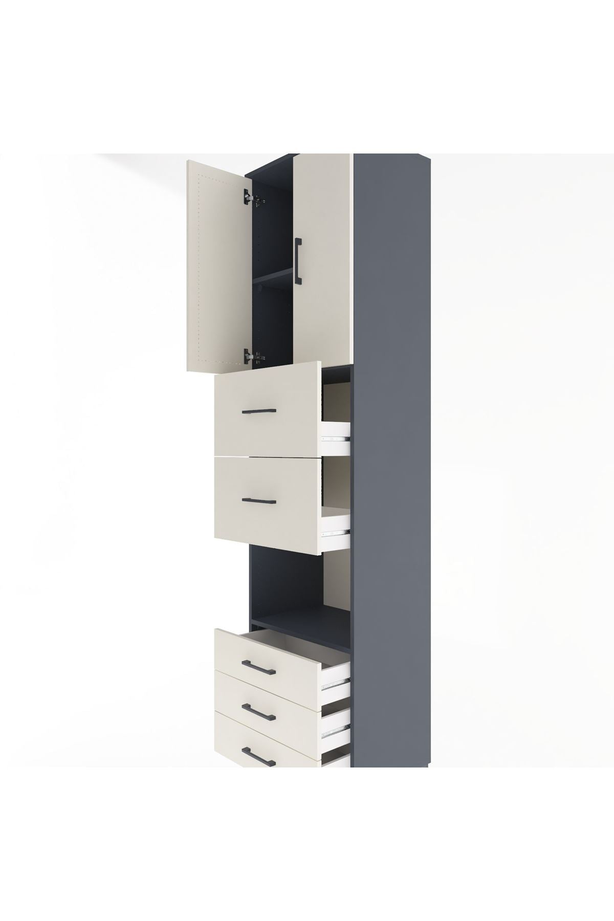 Hyperion Dolap 3 Raflı 5 Çekmeceli 2 Kapaklı 60x44x243 Antrasit-Aytaşı