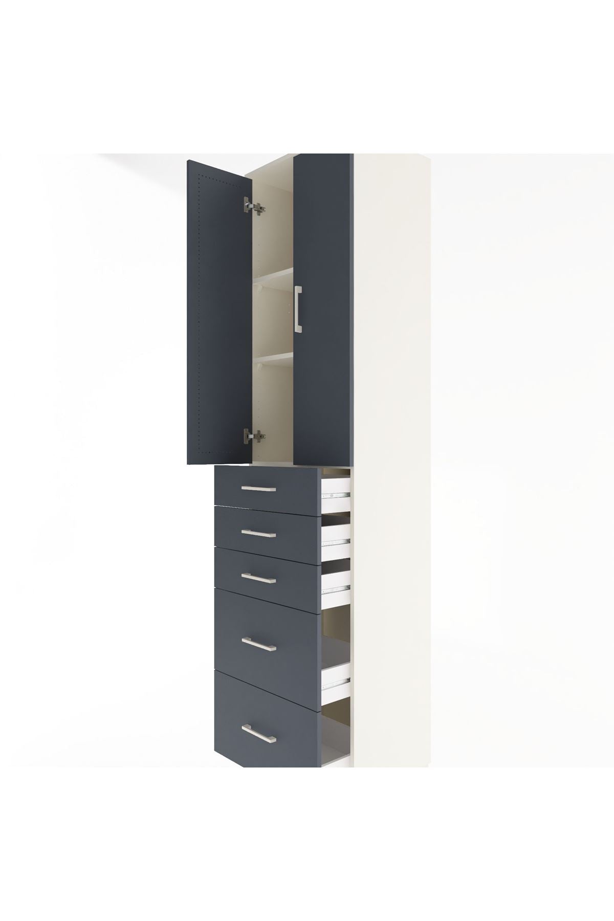 Hyperion Dolap 3 Raflı 5 Çekmeceli 2 Kapaklı 60x44x243 Aytaşı-Antrasit