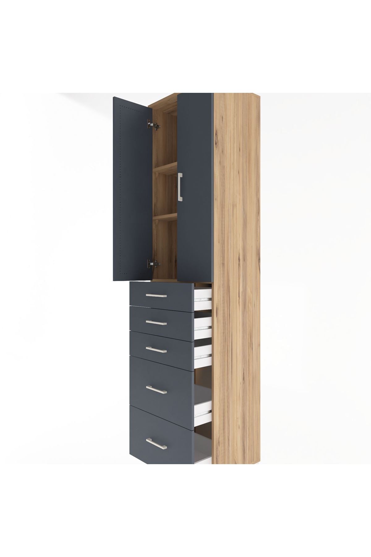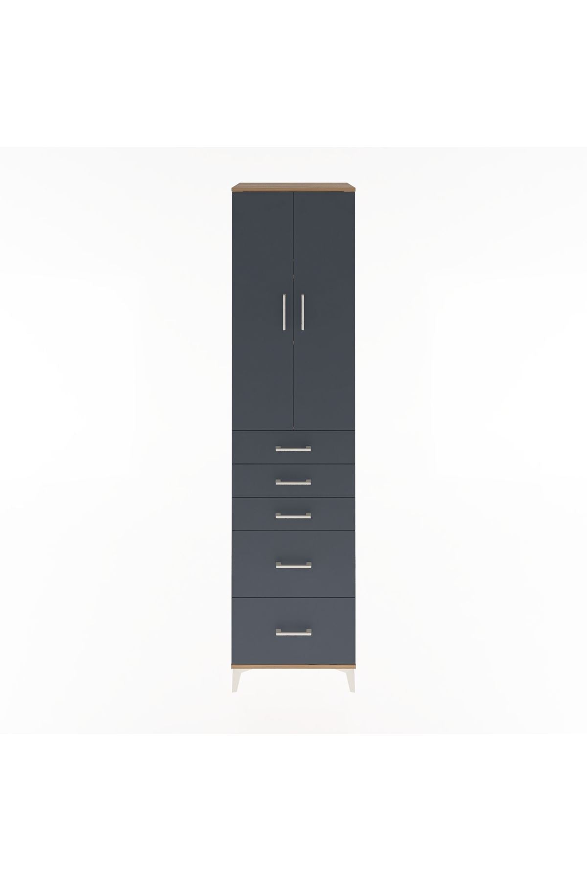 Hyperion Dolap 3 Raflı 5 Çekmeceli 2 Kapaklı 60x44x243 Çam-Antrasit