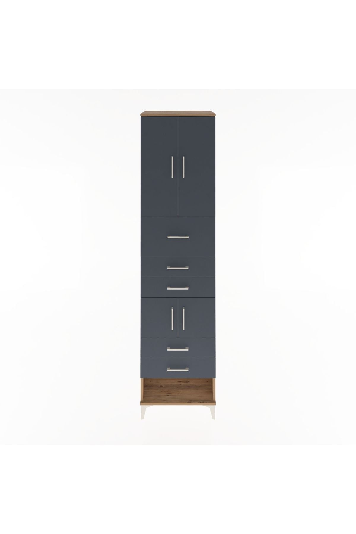 Hyperion Dolap 3 Raflı 5 Çekmeceli 4 Kapaklı 60x44x243 Çam-Antrasit