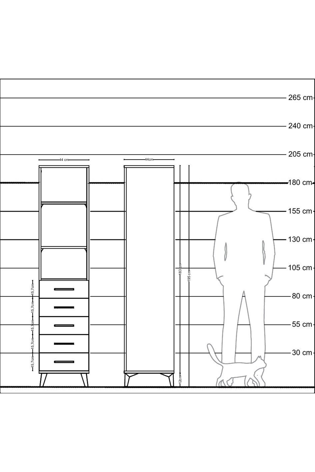 Hyperion Dolap 3 Raflı 5 Çekmeceli 44x44x195 Antrasit-Antrasit