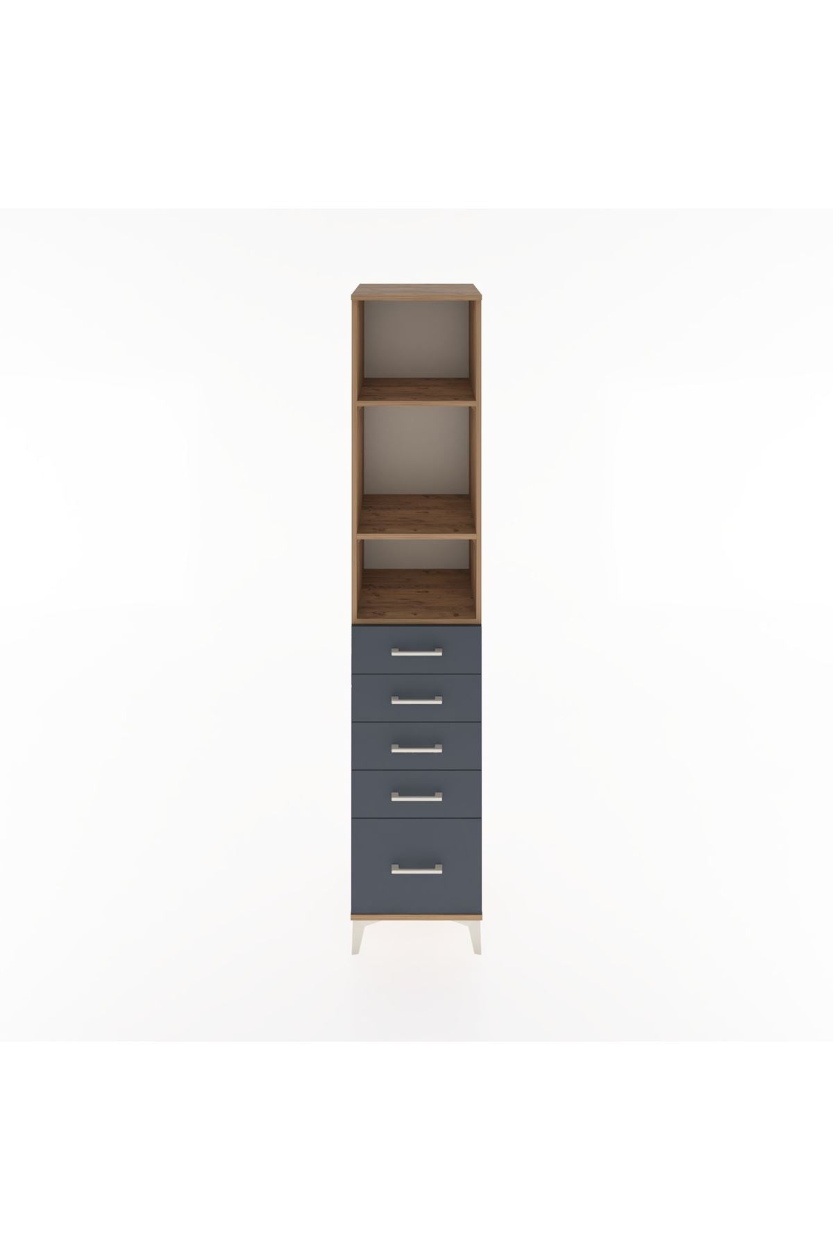 Hyperion Dolap 3 Raflı 5 Çekmeceli 44x44x221 Çam-Antrasit