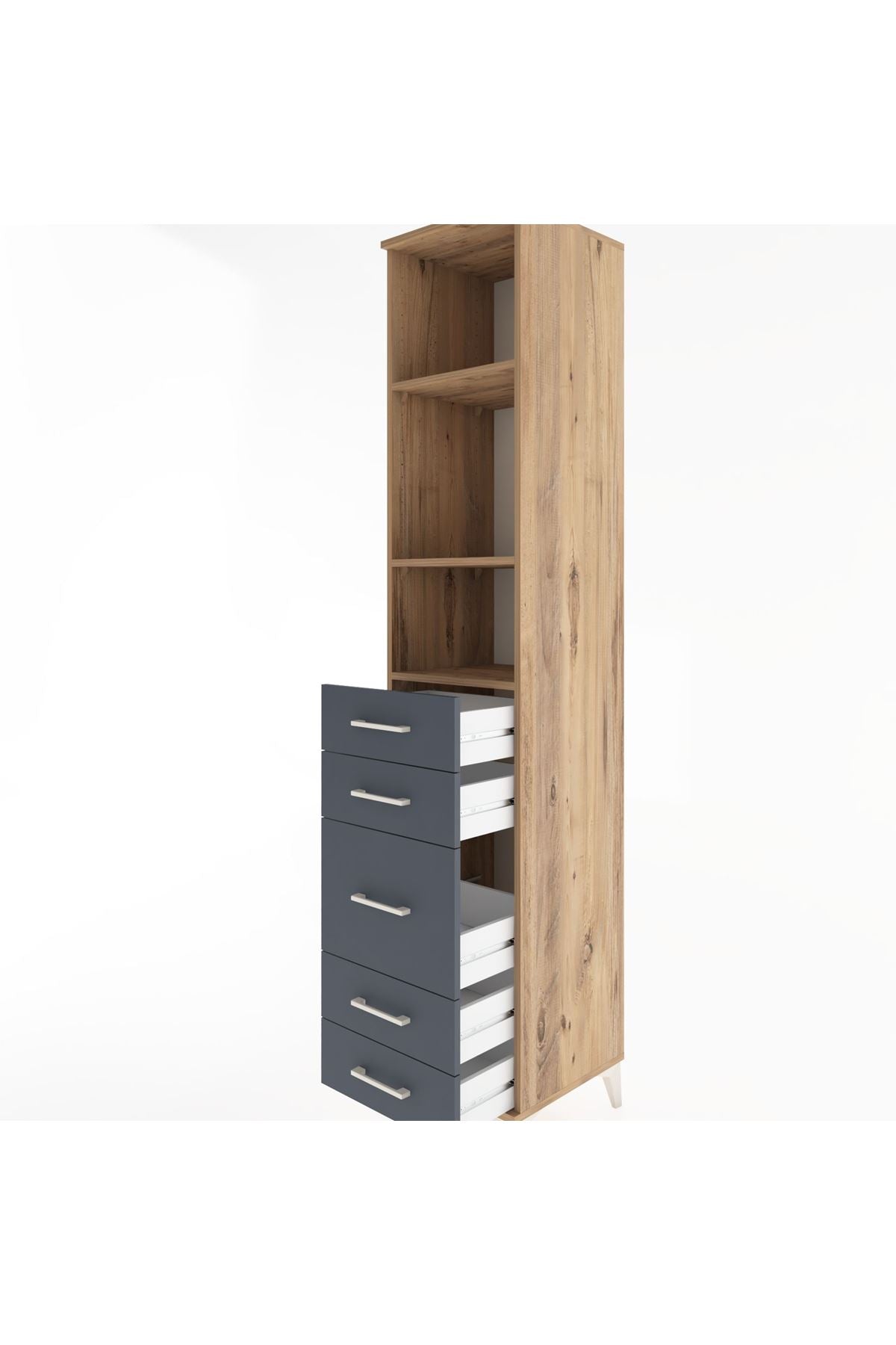Hyperion Dolap 3 Raflı 5 Çekmeceli 44x44x221 Çam-Antrasit