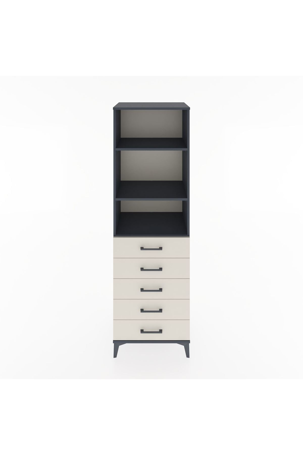 Hyperion Dolap 3 Raflı 5 Çekmeceli 60x44x195 Antrasit-Aytaşı