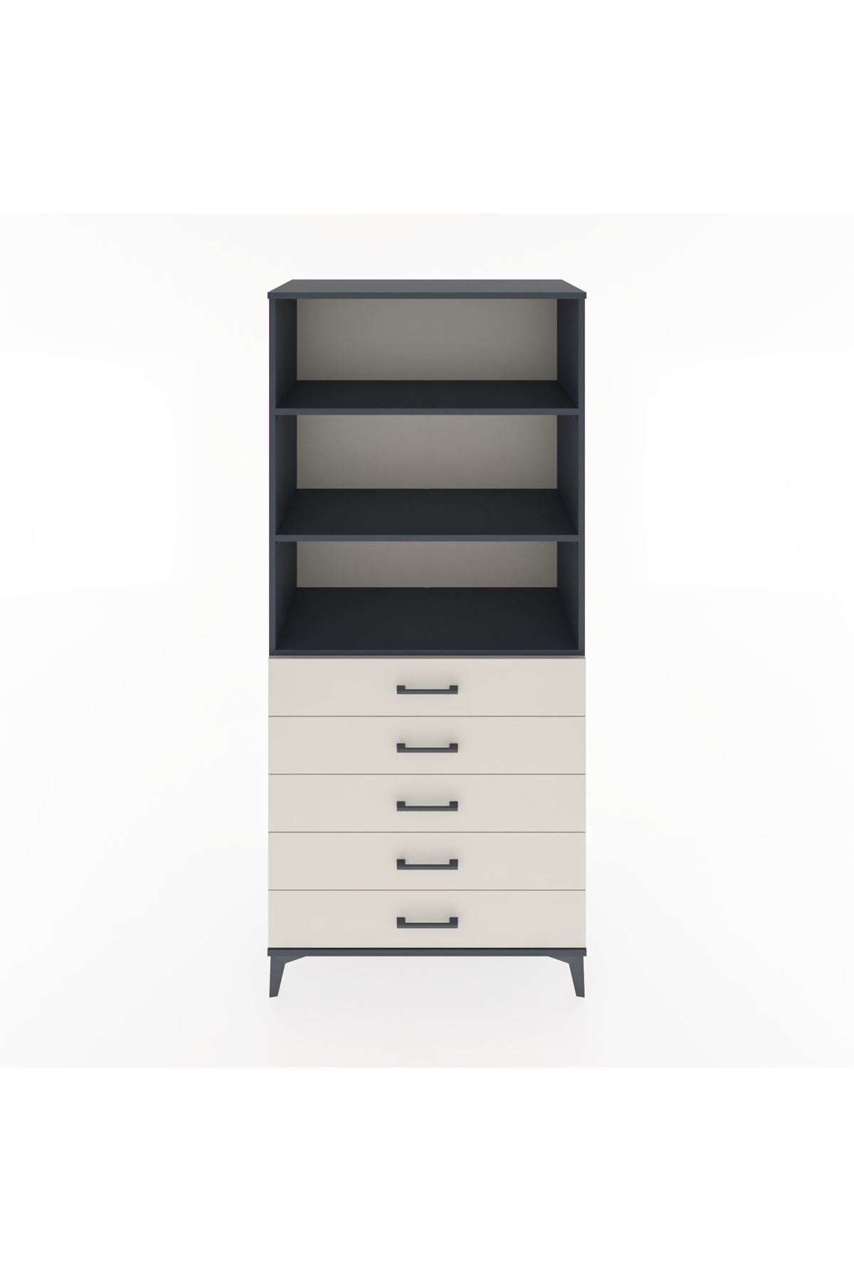 Hyperion Dolap 3 Raflı 5 Çekmeceli 88x44x195 Antrasit-Aytaşı