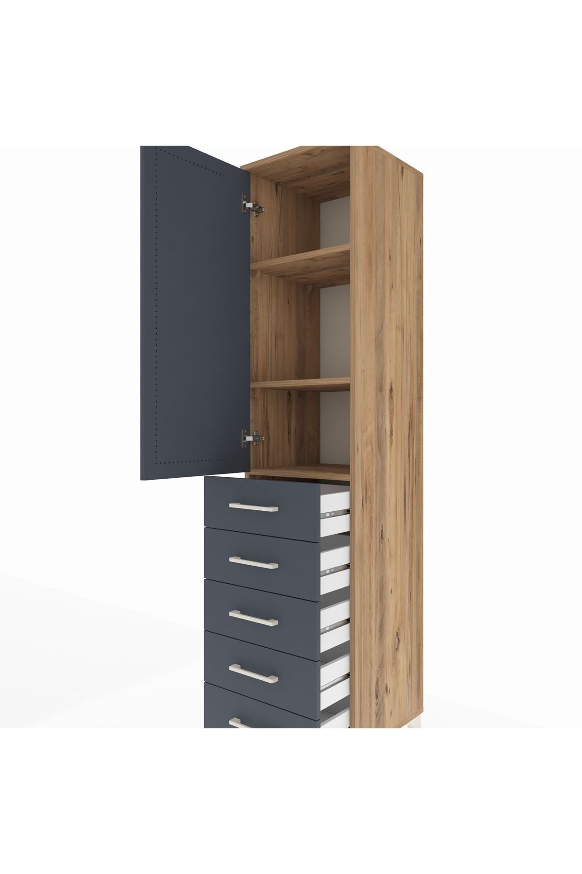 Hyperion Dolap 3 Raflı 5 Çekmeceli Tek Kapaklı 44x44x195 Çam-Antrasit