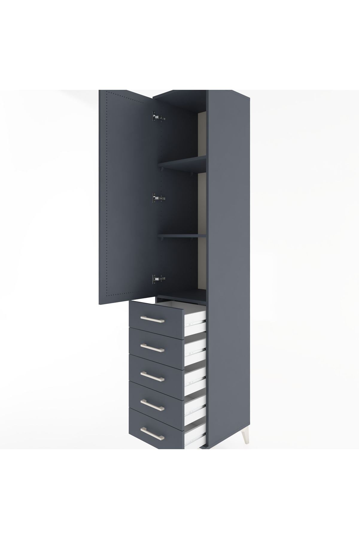 Hyperion Dolap 3 Raflı 5 Çekmeceli Tek Kapaklı 44x44x221 Antrasit-Antrasit