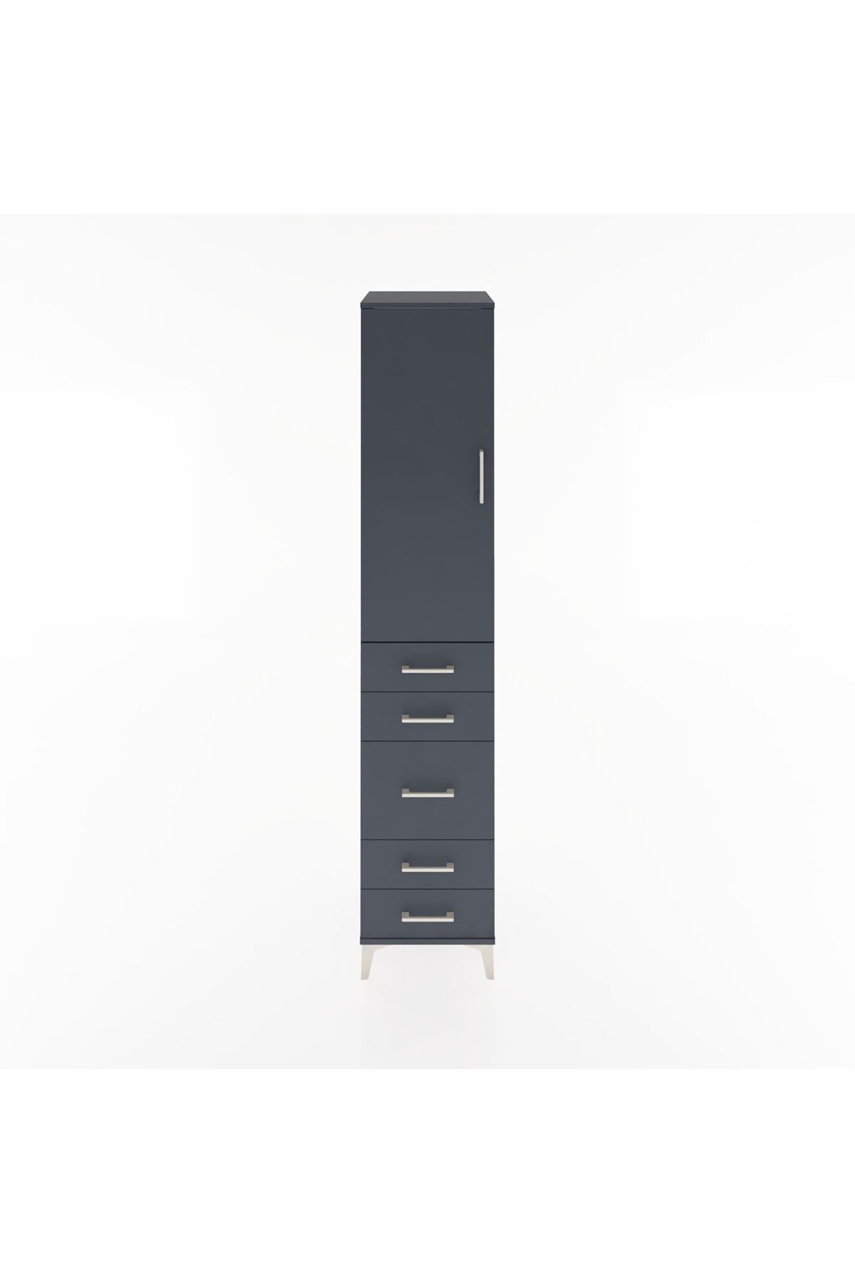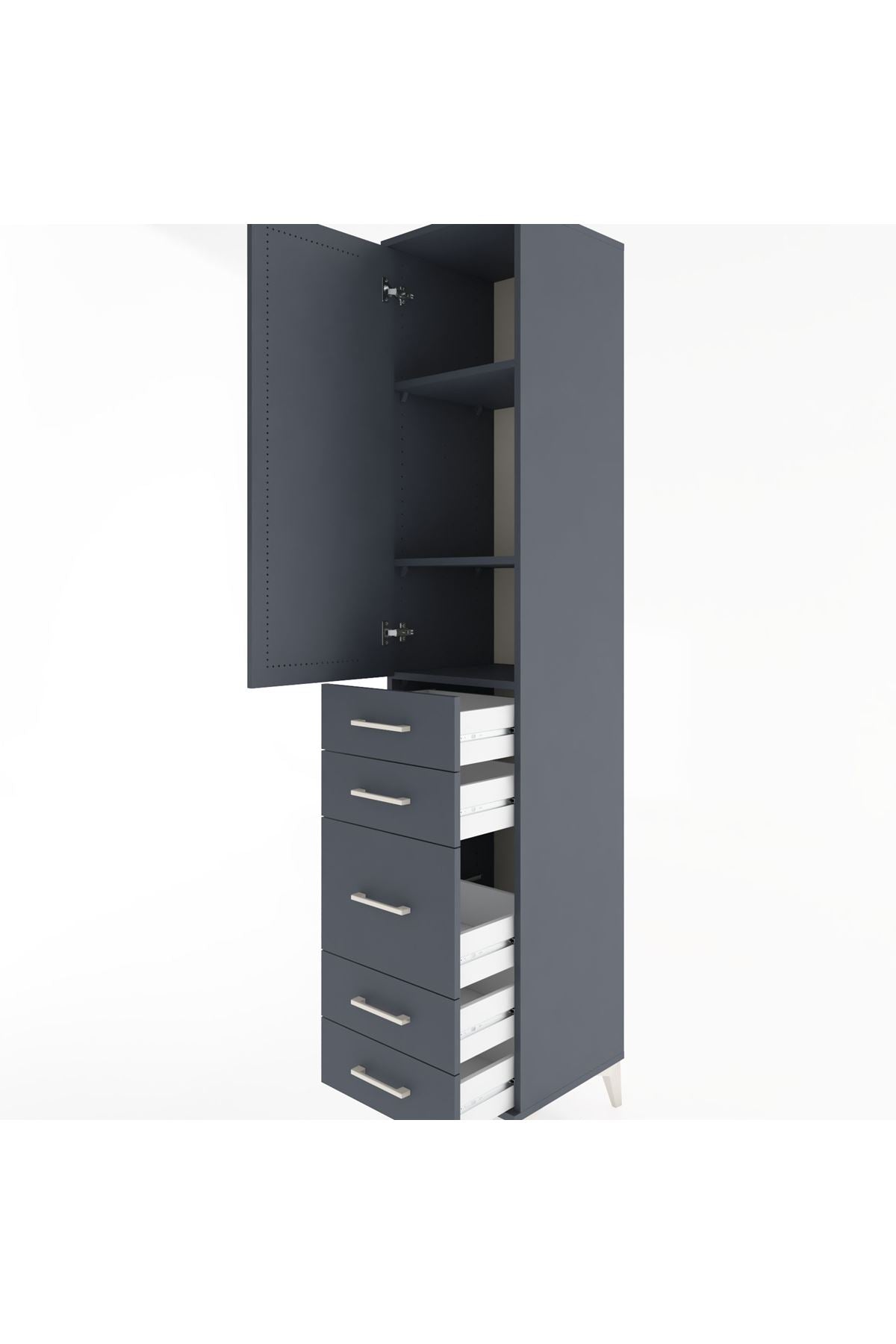Hyperion Dolap 3 Raflı 5 Çekmeceli Tek Kapaklı 44x44x221 Antrasit-Antrasit