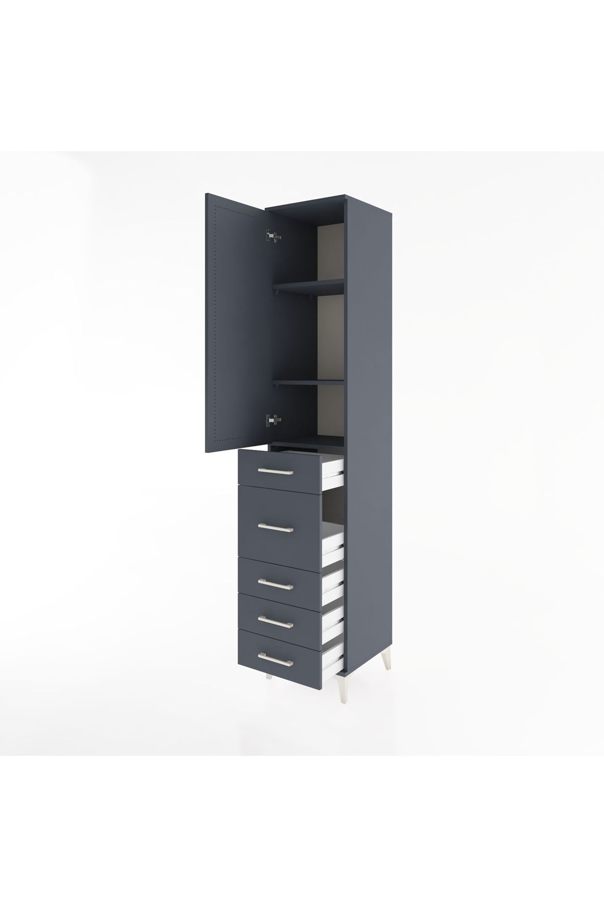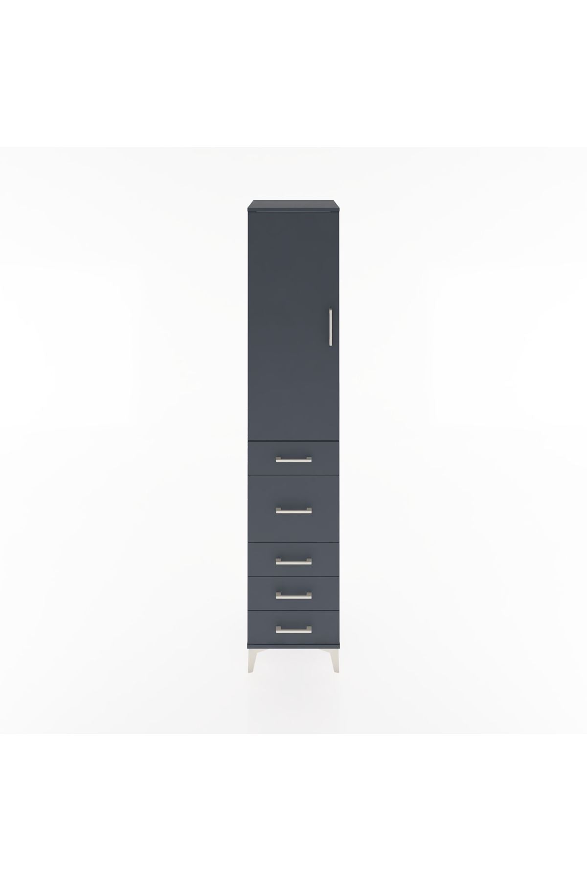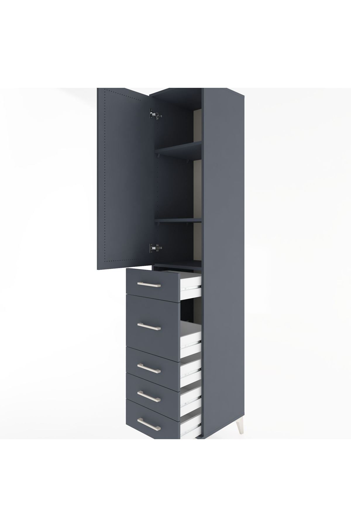Hyperion Dolap 3 Raflı 5 Çekmeceli Tek Kapaklı 44x44x221 Antrasit-Antrasit