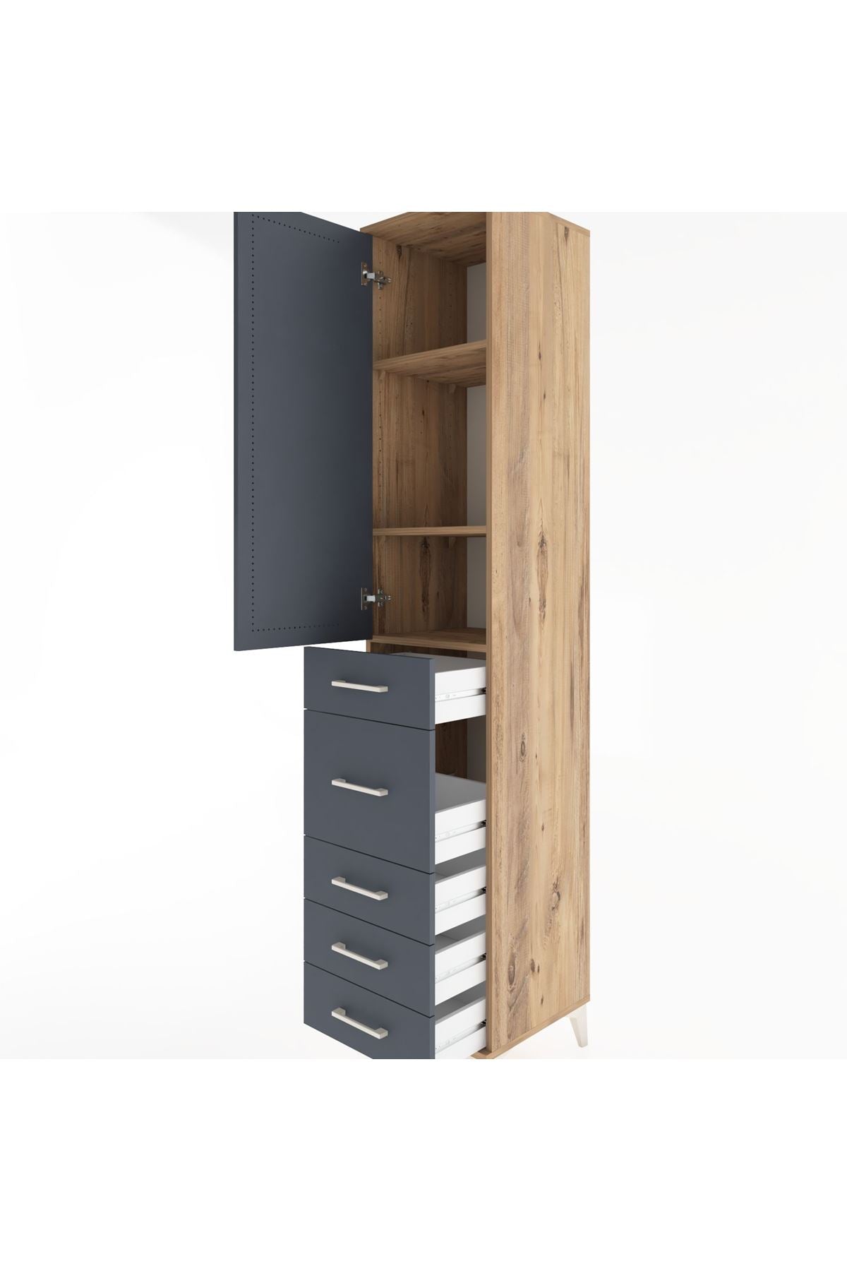 Hyperion Dolap 3 Raflı 5 Çekmeceli Tek Kapaklı 44x44x221 Çam-Antrasit