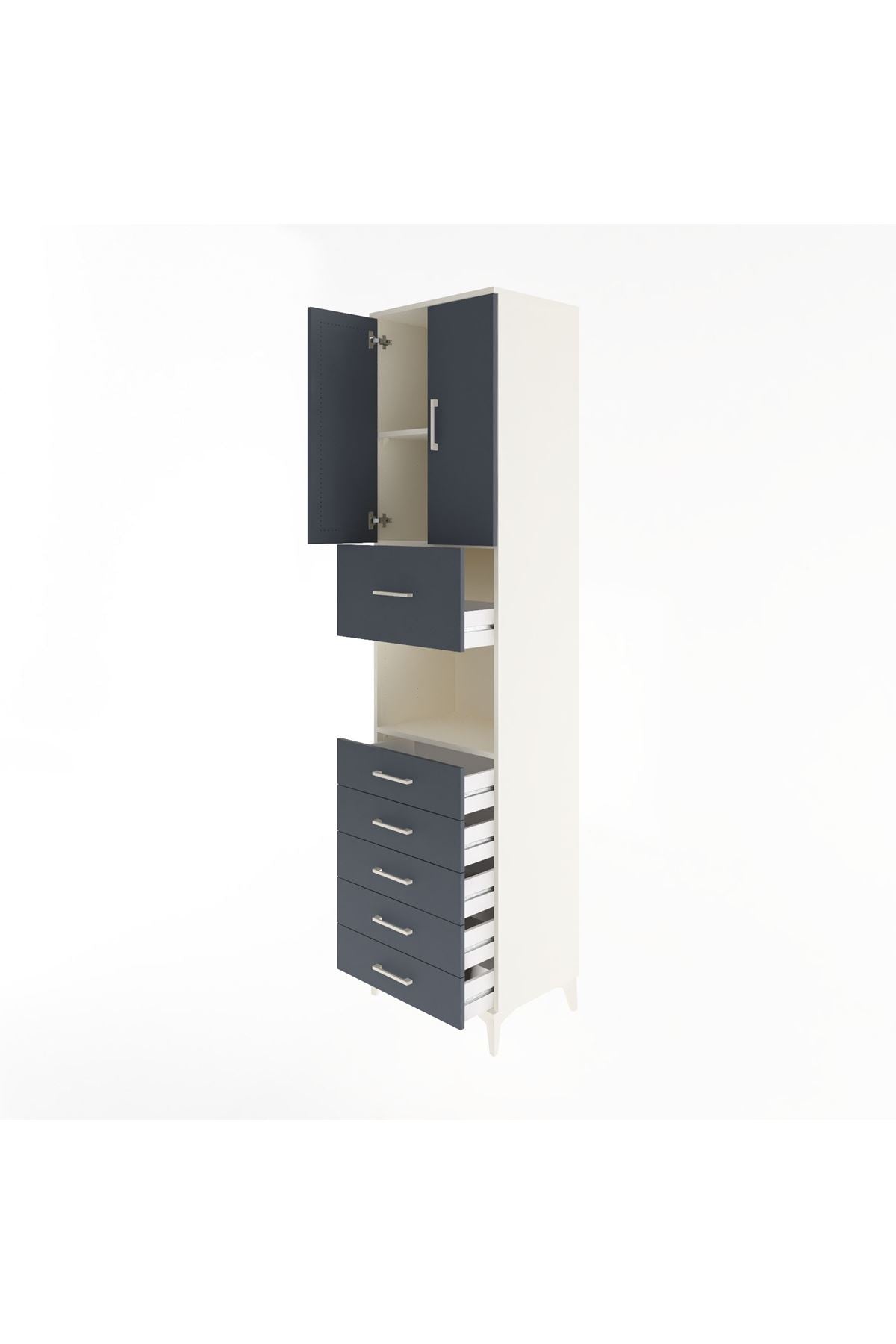 Hyperion Dolap 3 Raflı 6 Çekmeceli 2 Kapaklı 60x44x243 Aytaşı-Antrasit