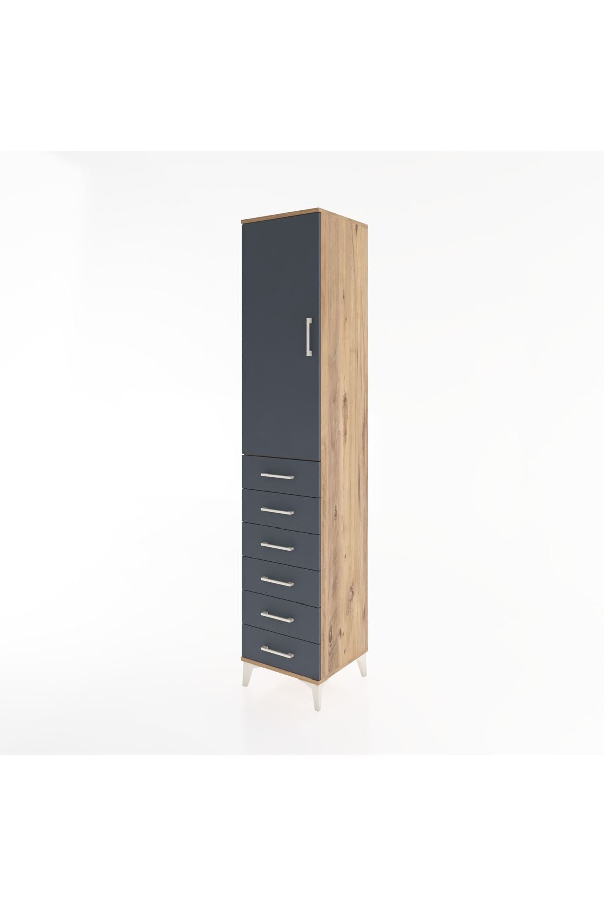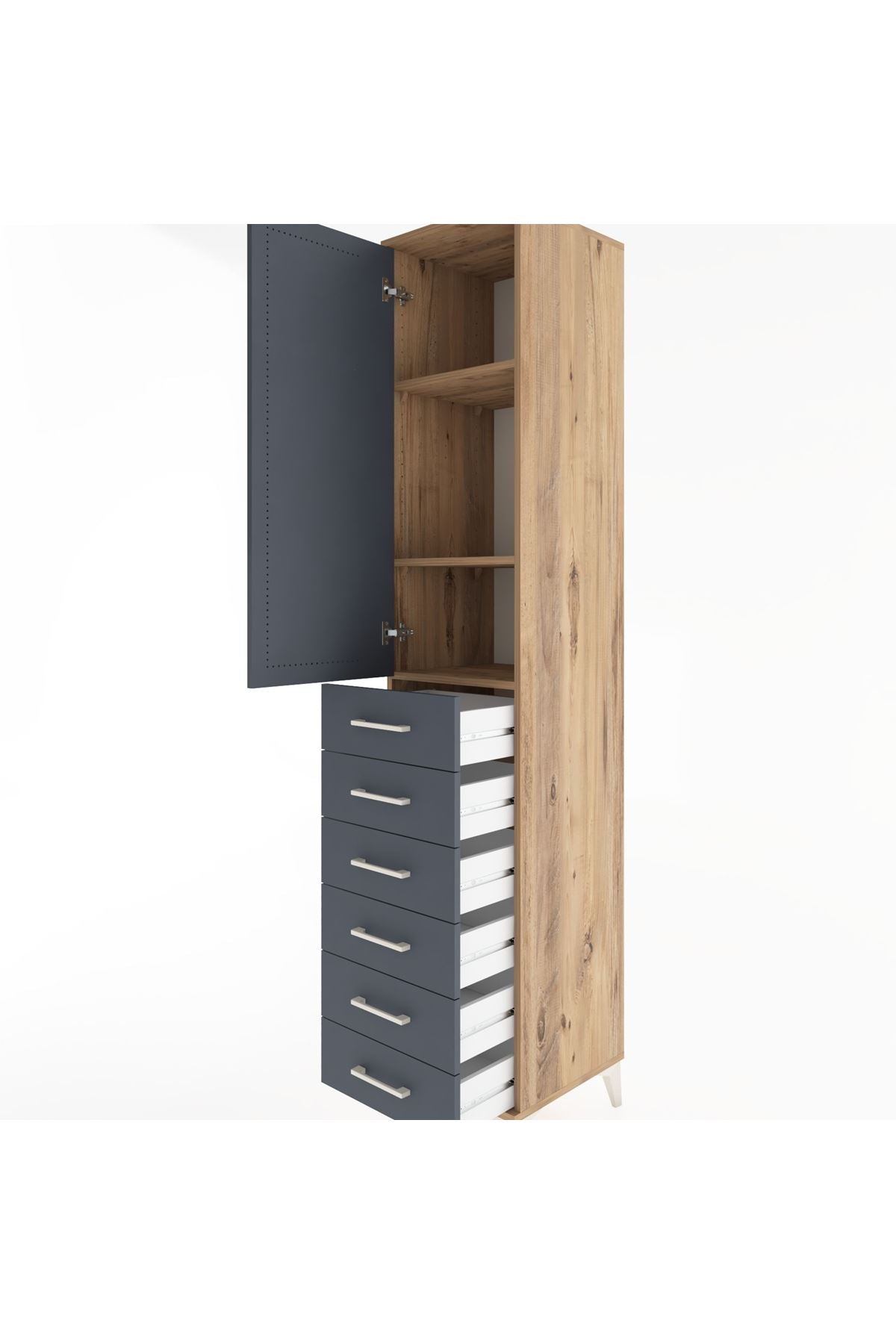 Hyperion Dolap 3 Raflı 6 Çekmeceli Tek Kapaklı 44x44x221 Çam-Antrasit