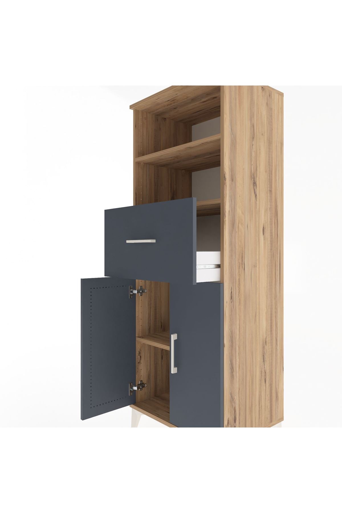 Hyperion Dolap 3 Raflı Tek Çekmeceli 2 Kapaklı 60x44x163 Çam-Antrasit