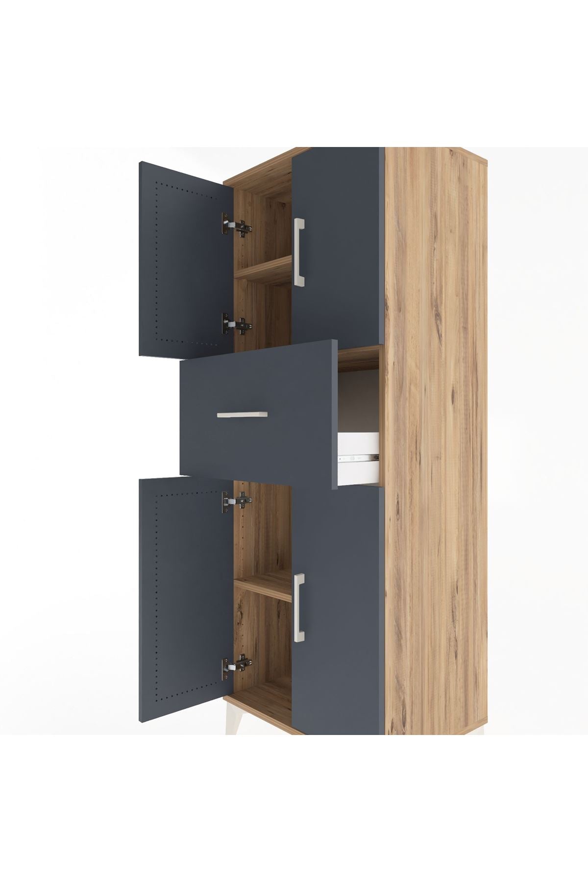 Hyperion Dolap 3 Raflı Tek Çekmeceli 4 Kapaklı 60x44x163 Çam-Antrasit