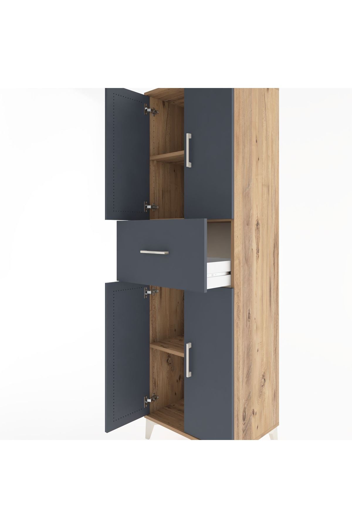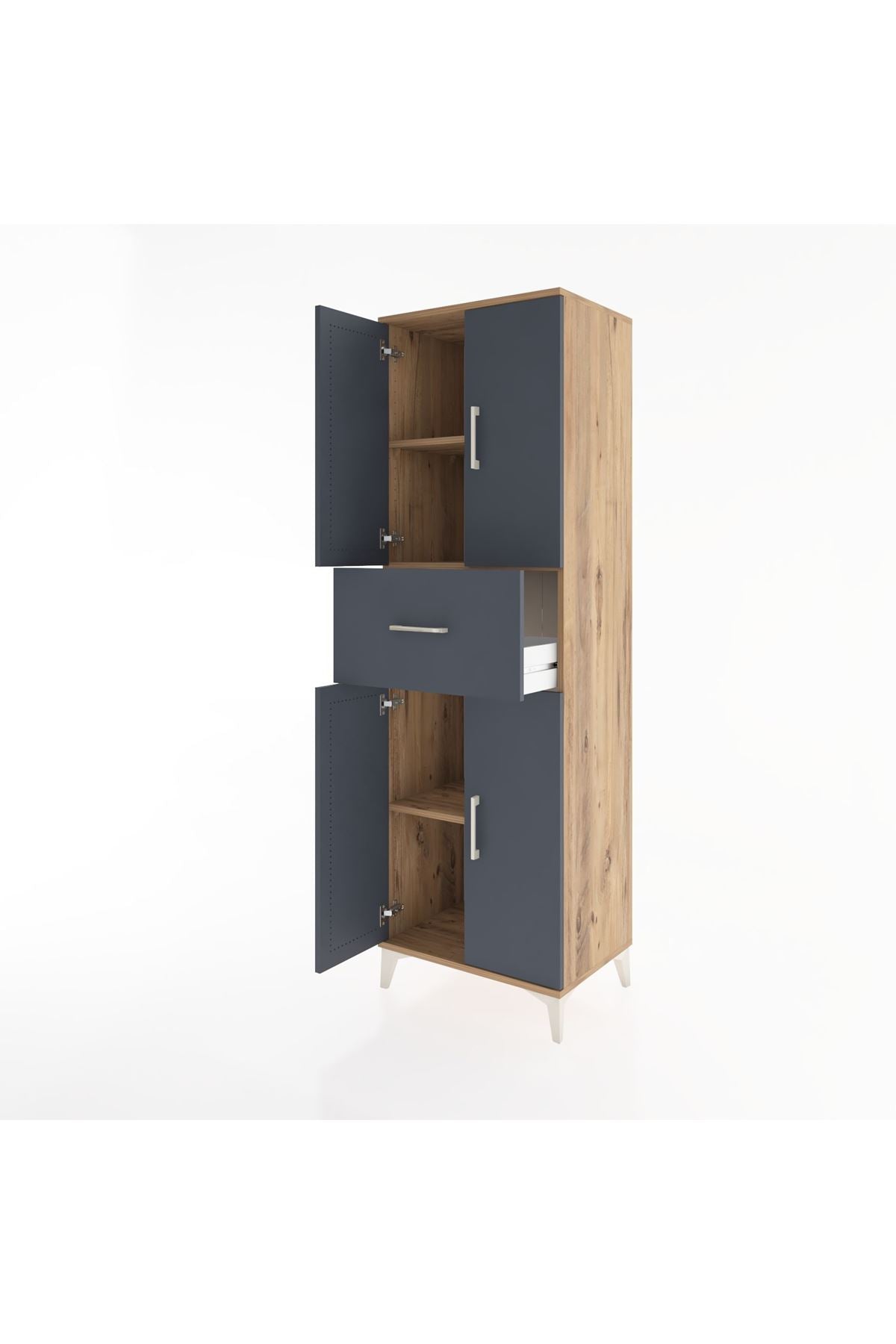 Hyperion Dolap 3 Raflı Tek Çekmeceli 4 Kapaklı 60x44x195 Çam-Antrasit
