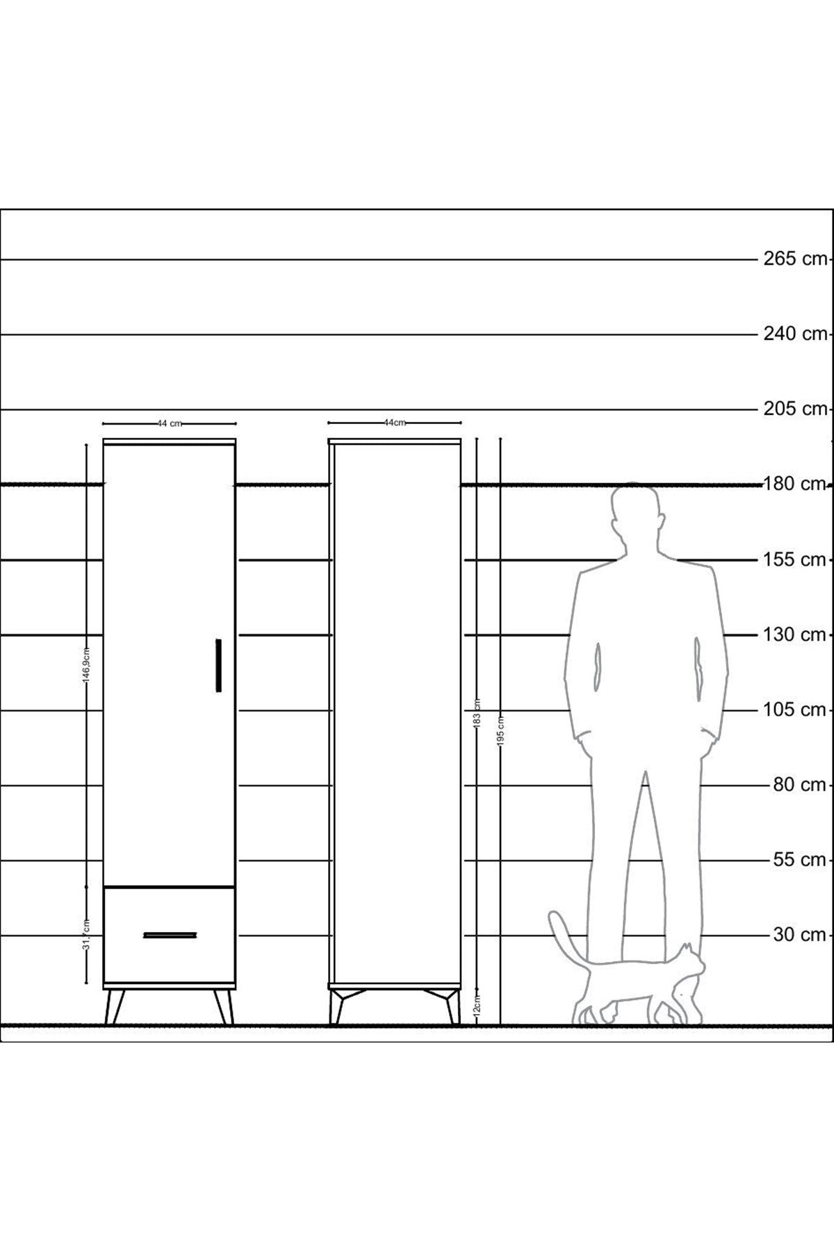 Hyperion Dolap 3 Raflı Tek Çekmeceli Tek Askılı 44x44x195 Antrasit-Antrasit