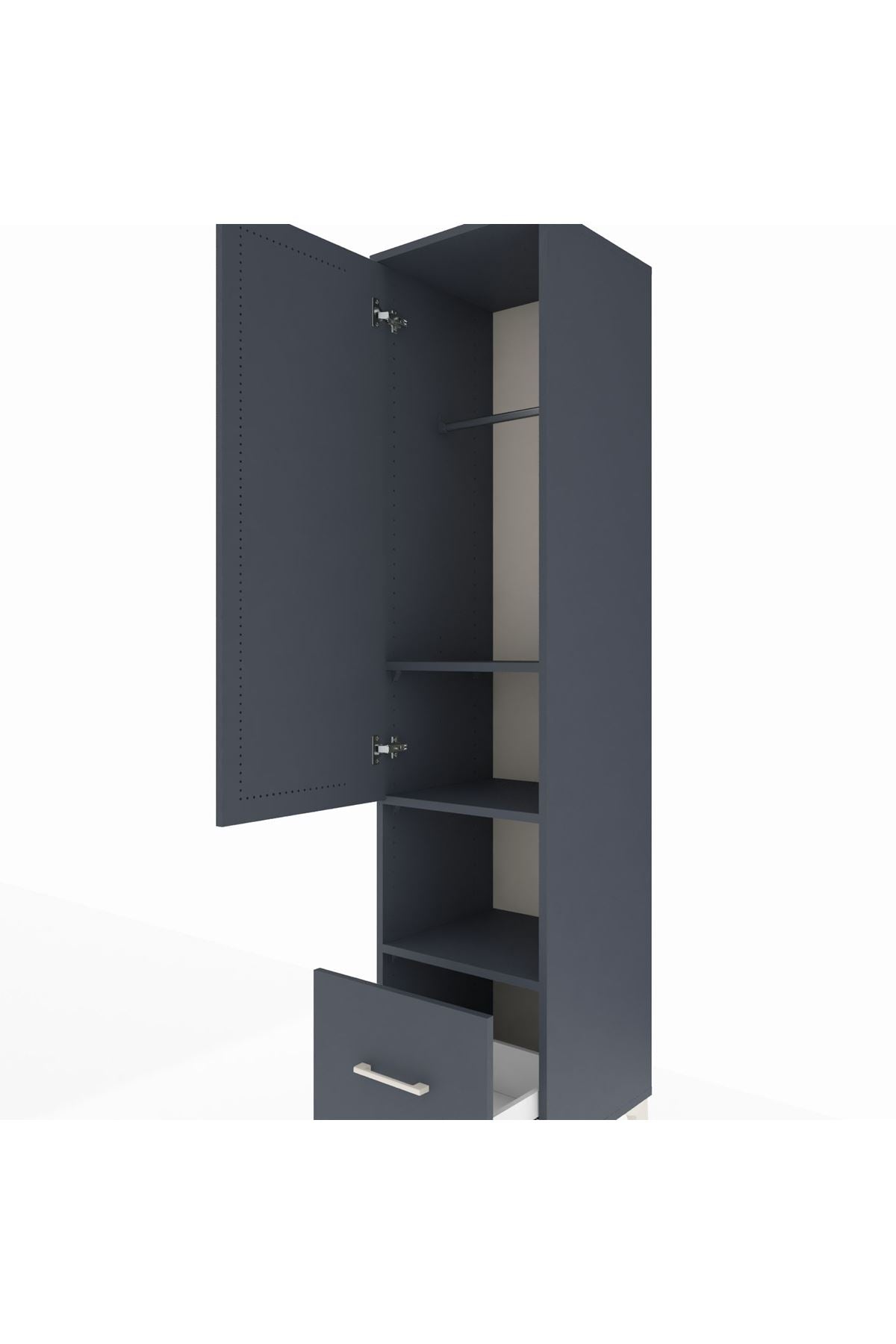 Hyperion Dolap 3 Raflı Tek Çekmeceli Tek Askılı 44x44x195 Antrasit-Antrasit