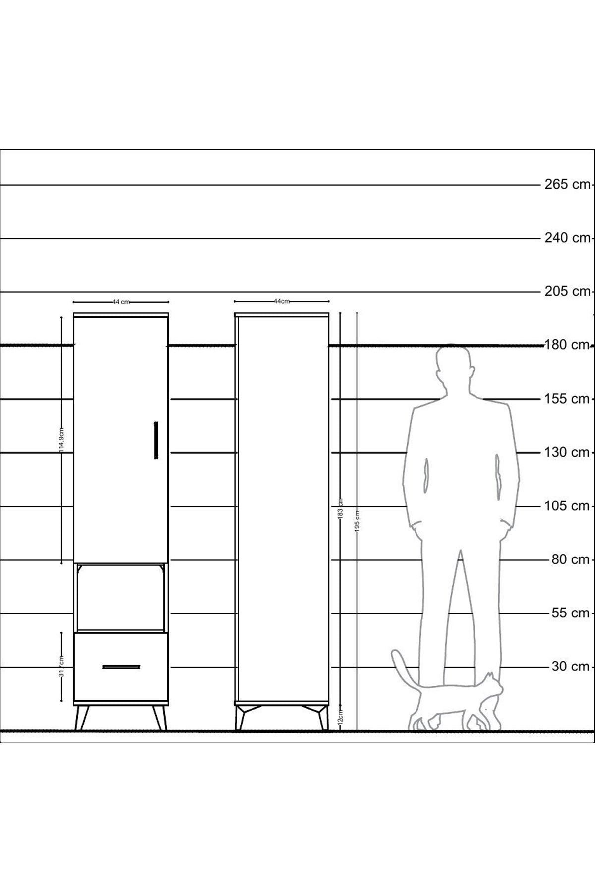 Hyperion Dolap 3 Raflı Tek Çekmeceli Tek Askılı 44x44x195 Antrasit-Çam