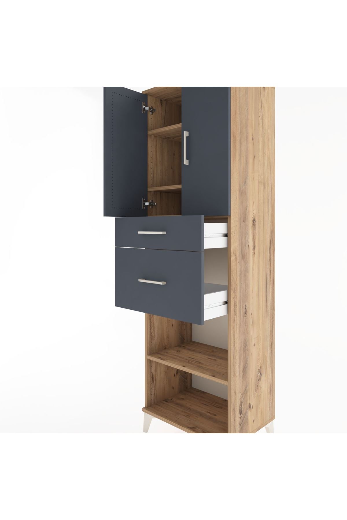 Hyperion Dolap 4 Raflı 2 Çekmeceli 2 Kapaklı 60x44x195 Çam-Antrasit