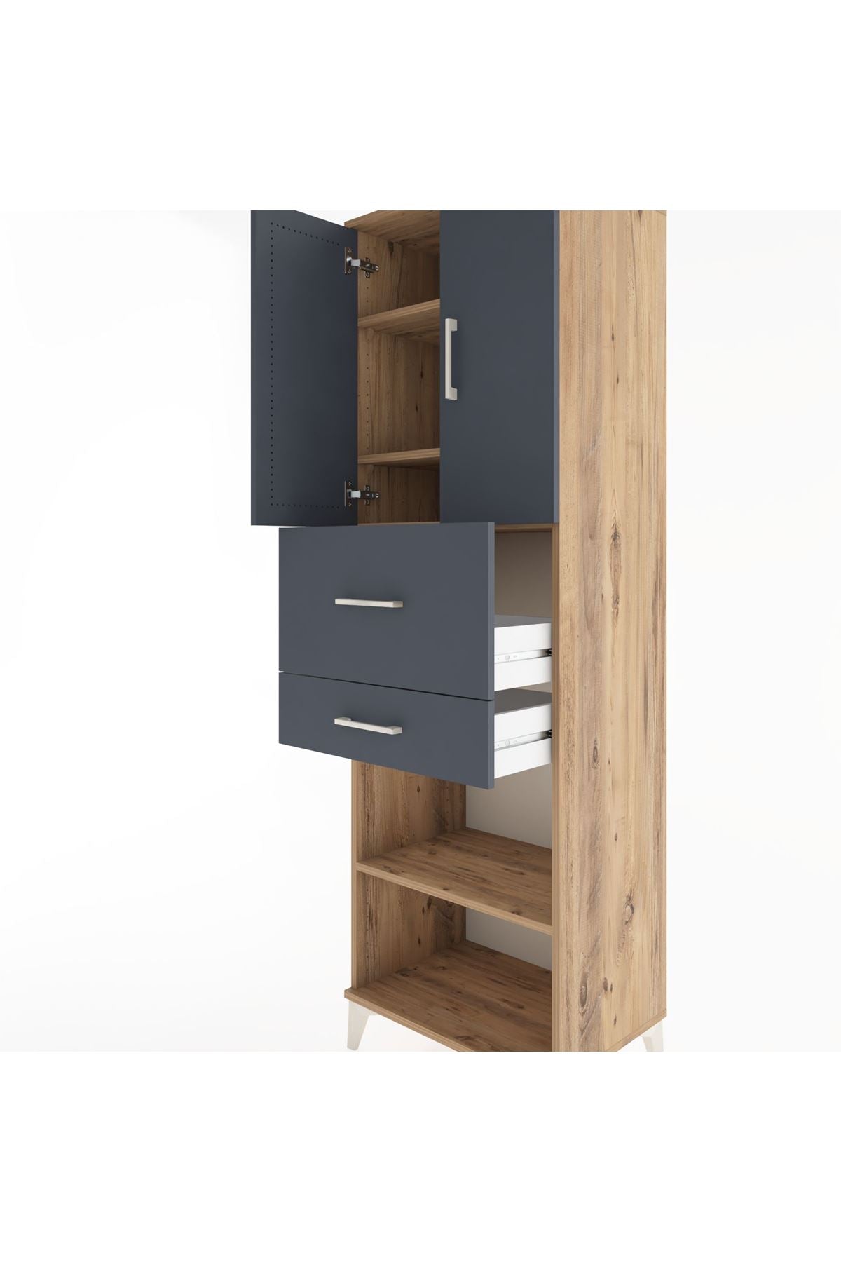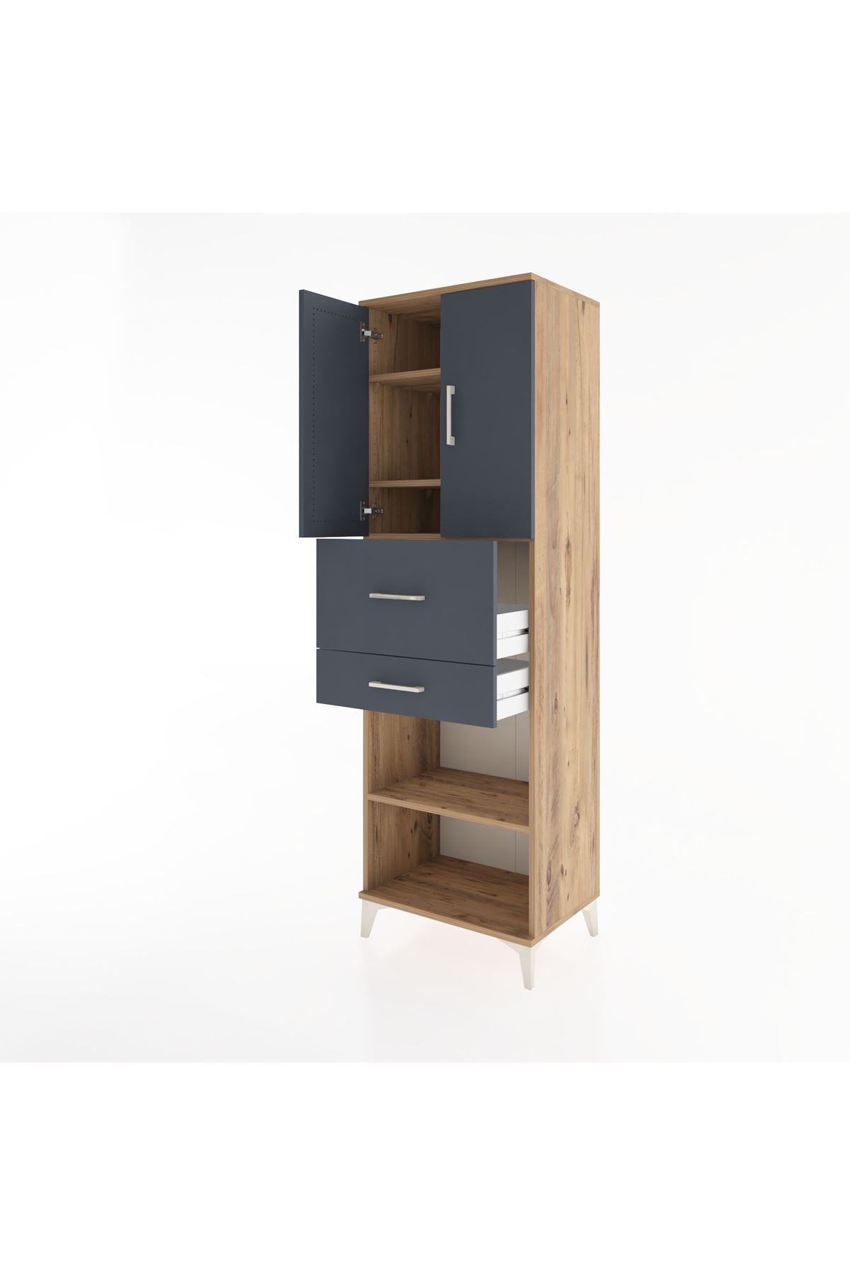 Hyperion Dolap 4 Raflı 2 Çekmeceli 2 Kapaklı 60x44x195 Çam-Antrasit
