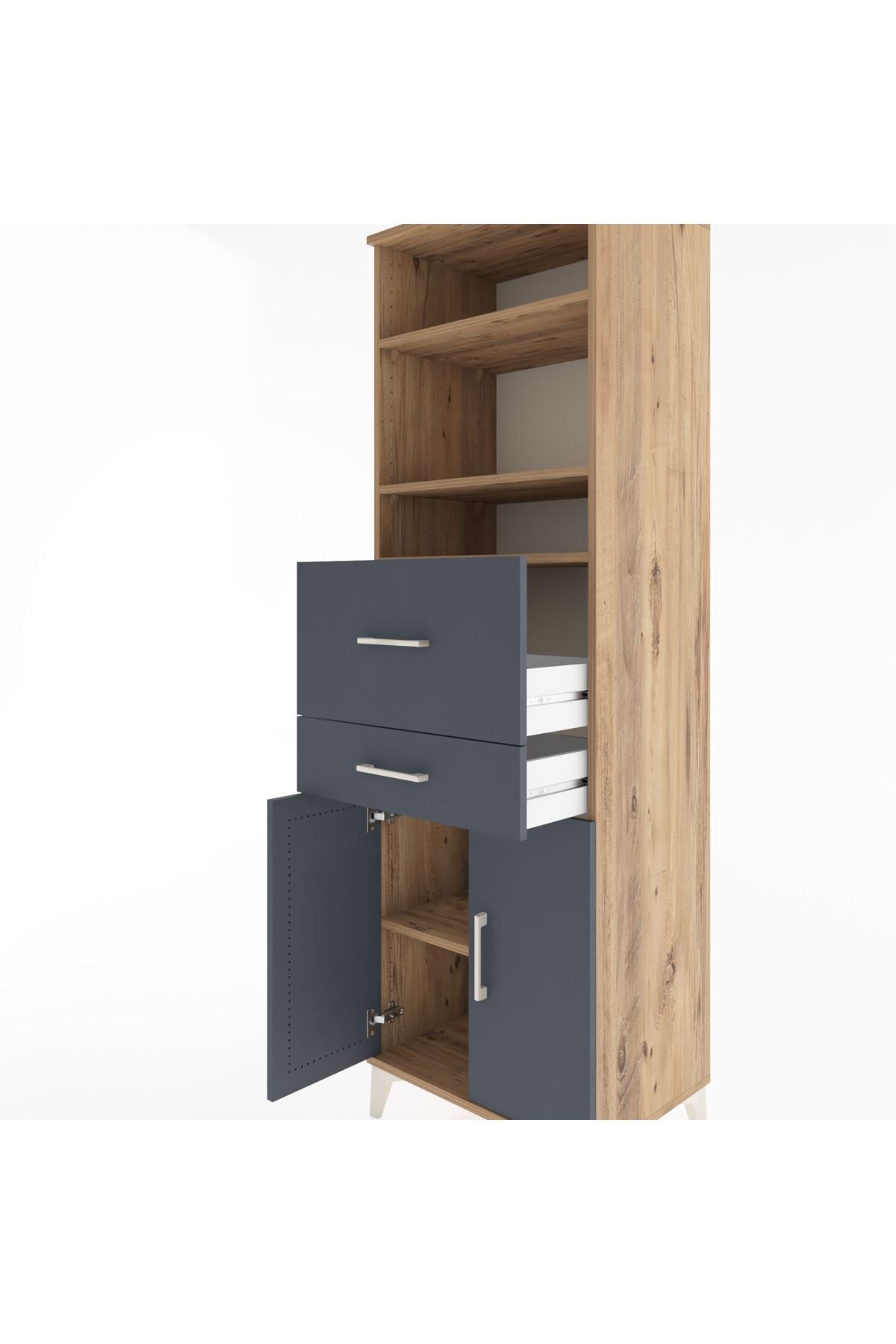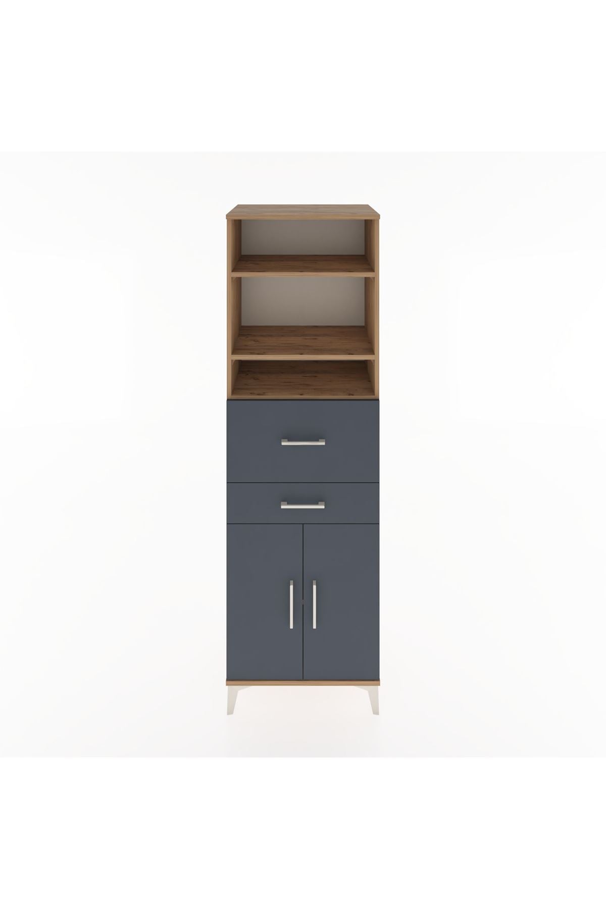 Hyperion Dolap 4 Raflı 2 Çekmeceli 2 Kapaklı 60x44x195 Çam-Antrasit