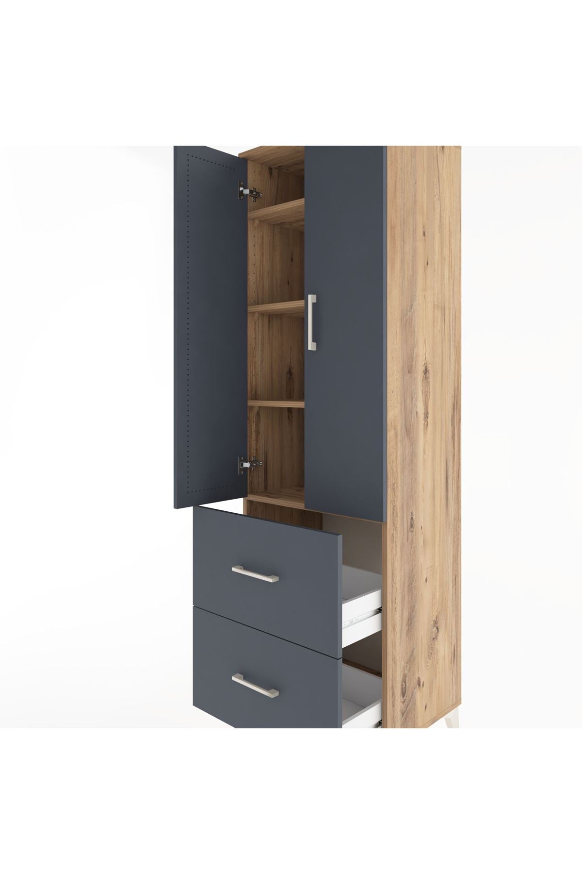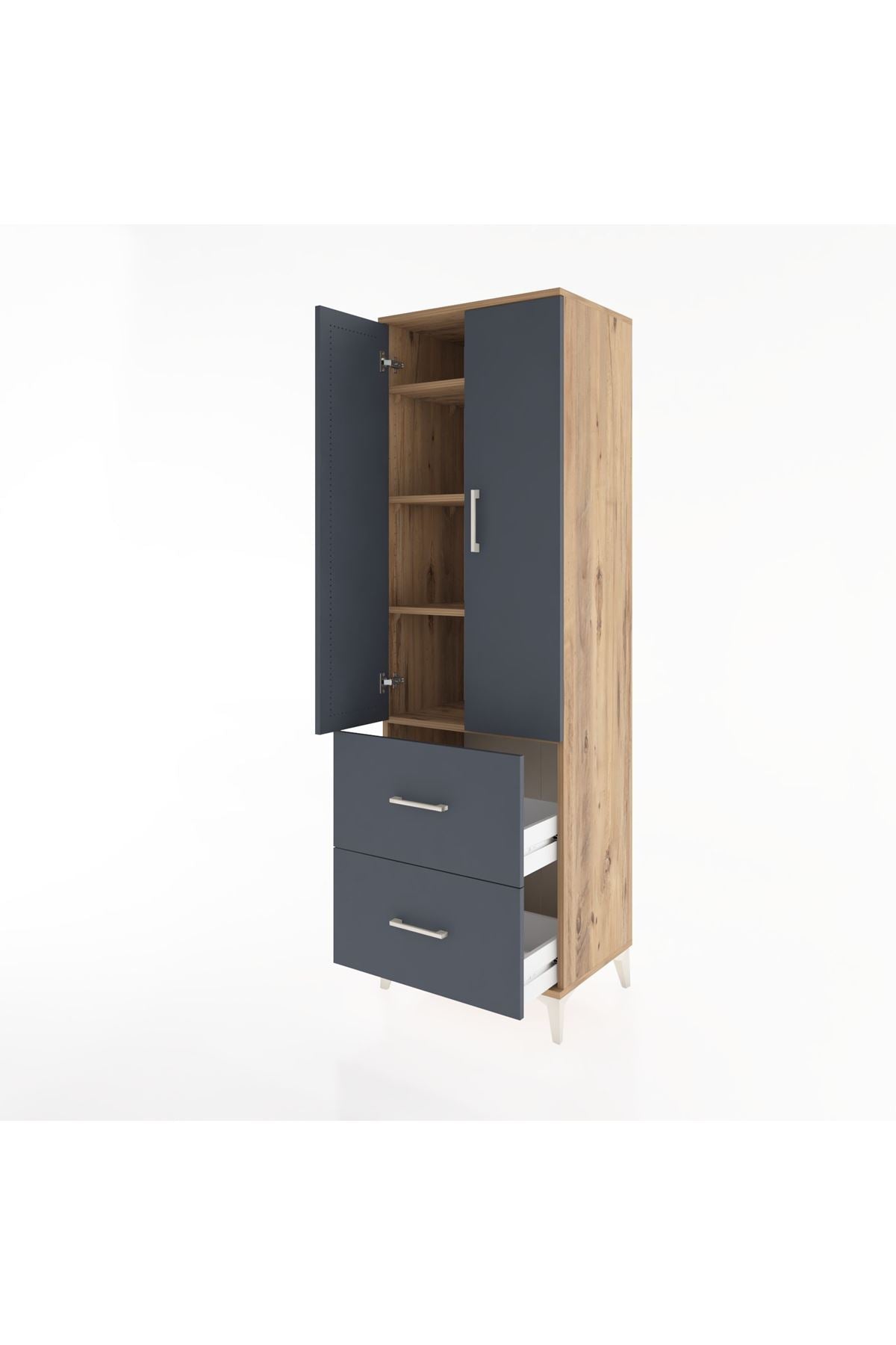 Hyperion Dolap 4 Raflı 2 Çekmeceli 2 Kapaklı 60x44x195 Çam-Antrasit
