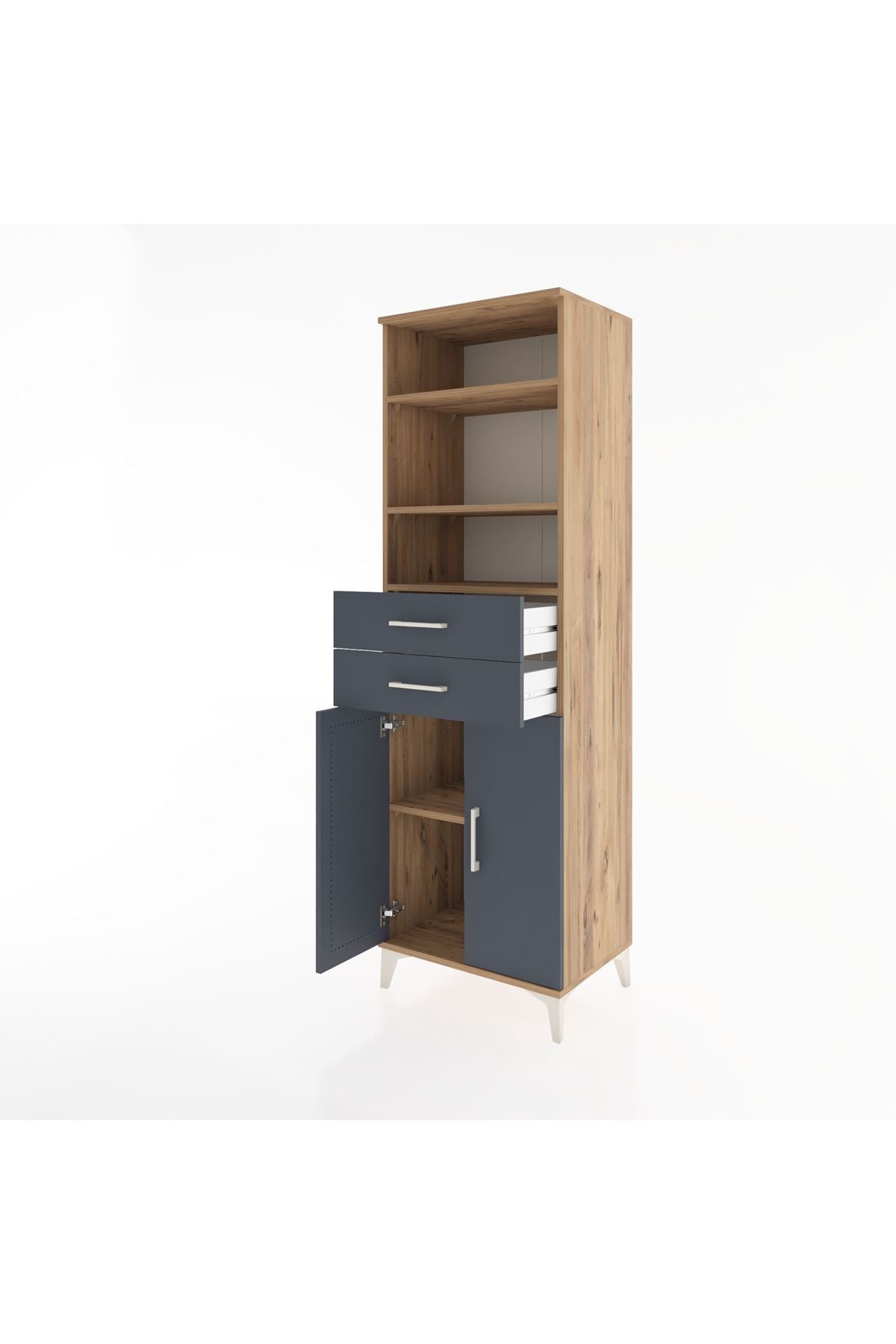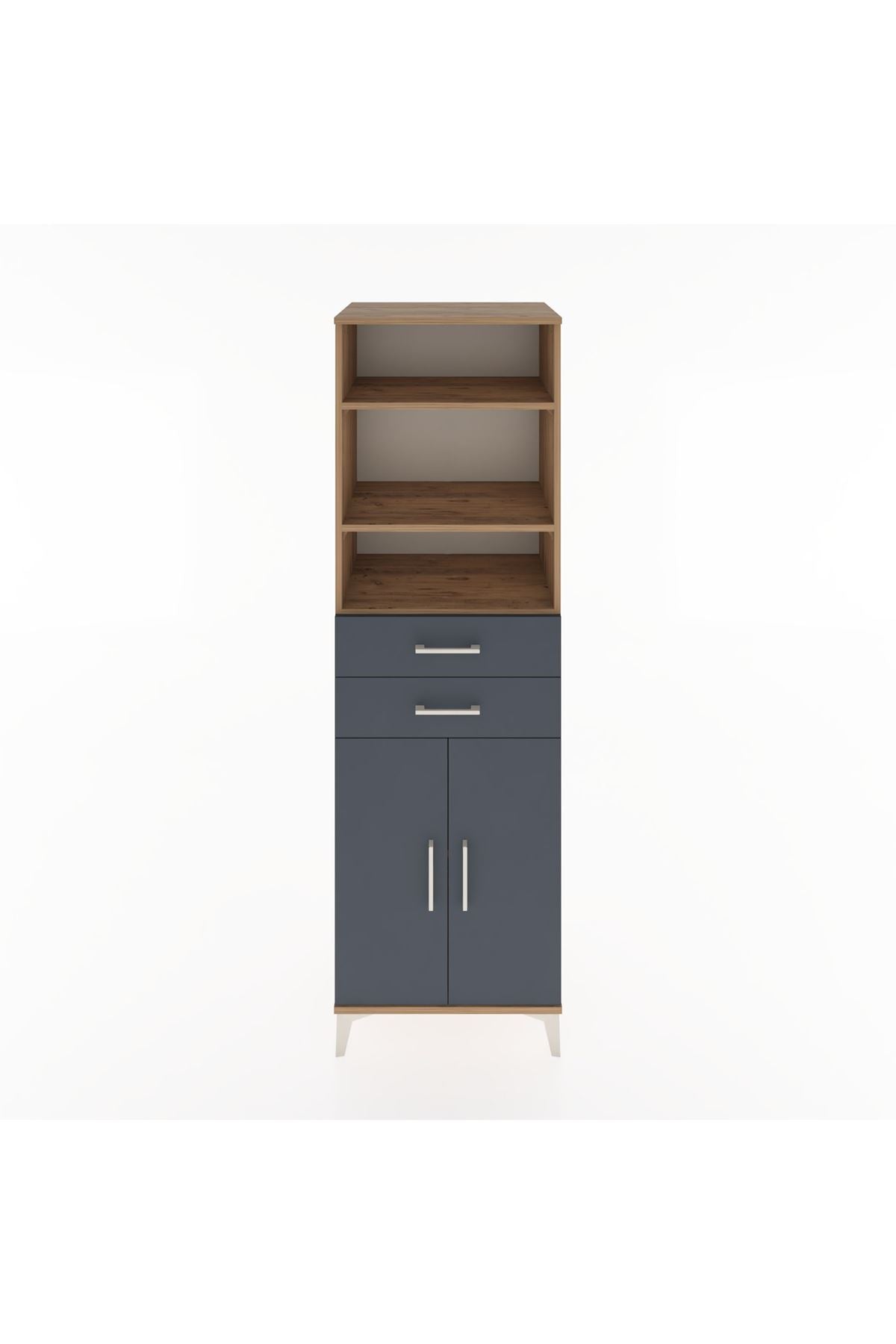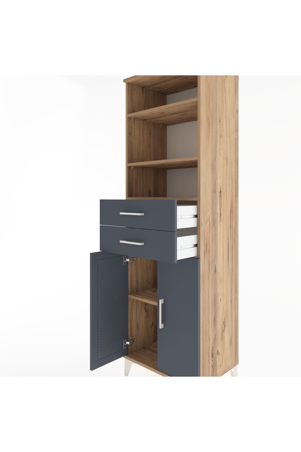 Hyperion Dolap 4 Raflı 2 Çekmeceli 2 Kapaklı 60x44x195 Çam-Antrasit